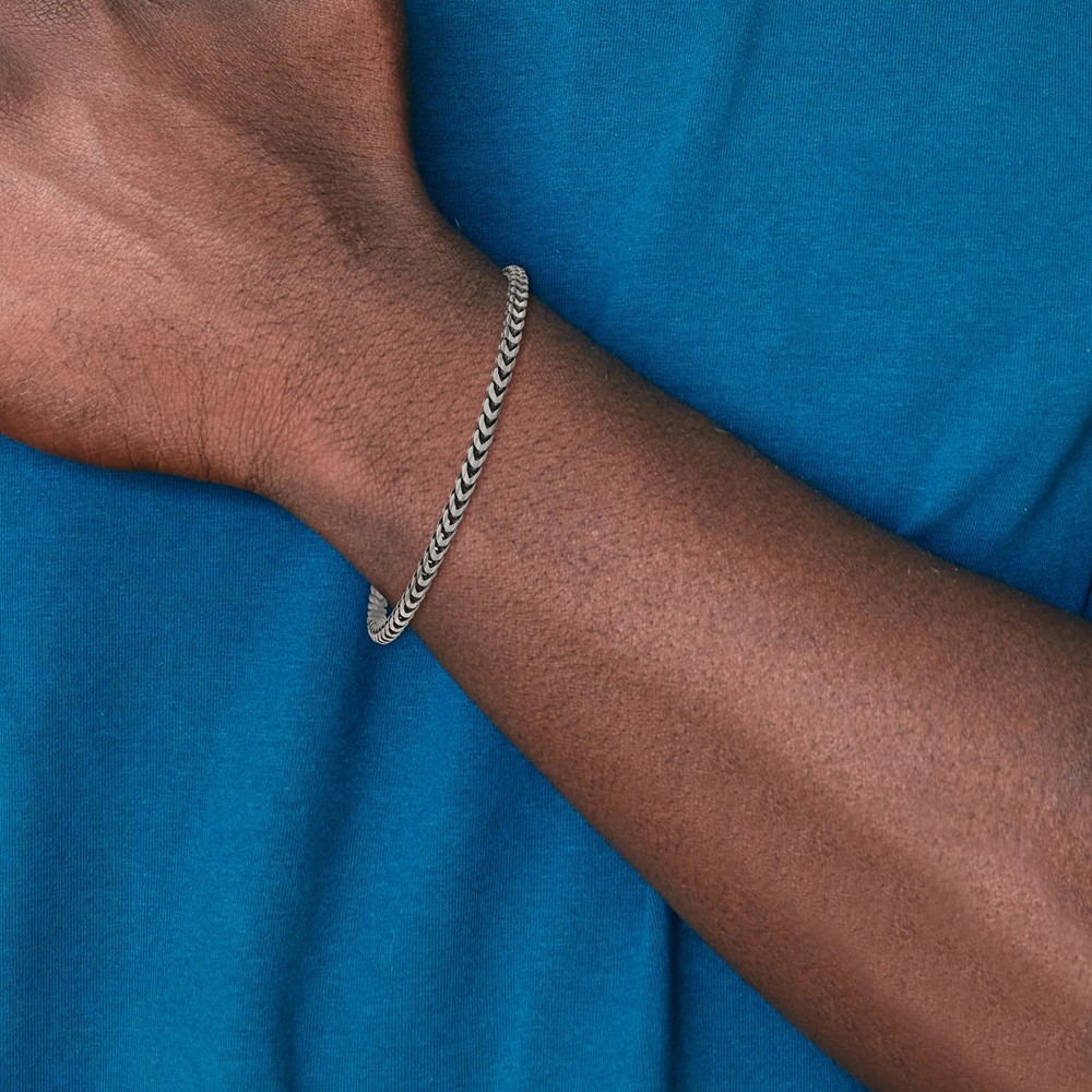 Sterling Silver Antiqued Diamond-Cut Square Franco Chain