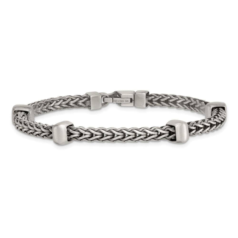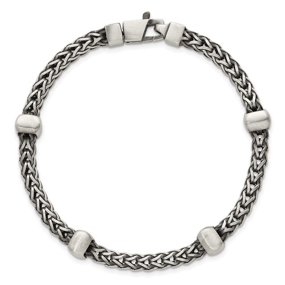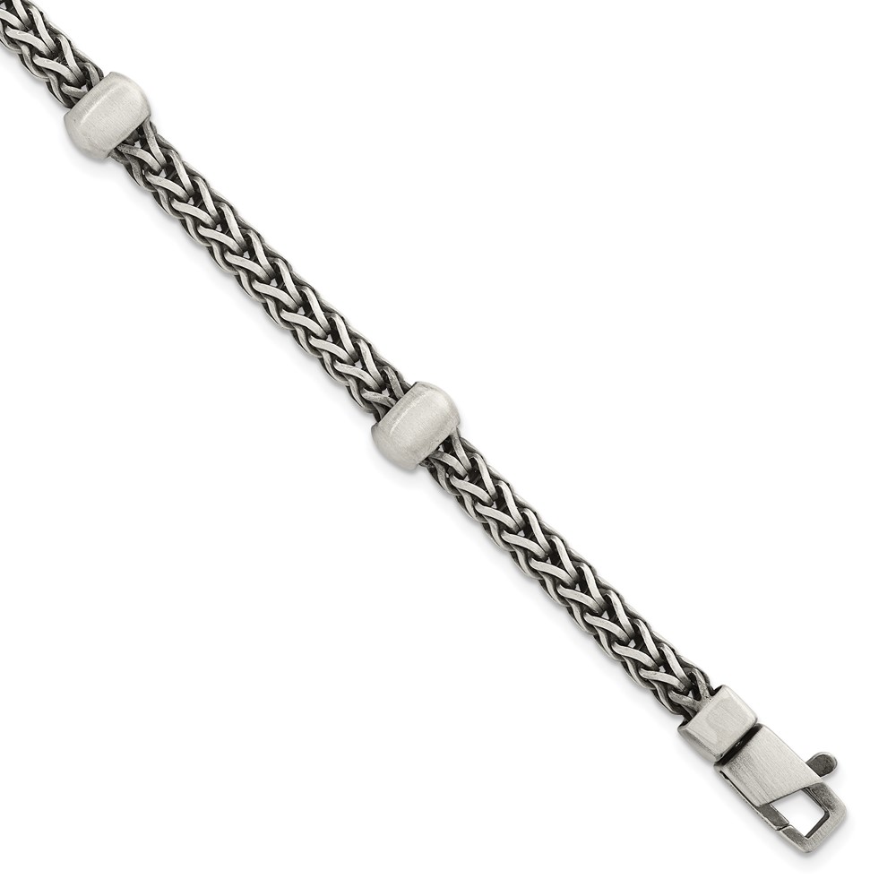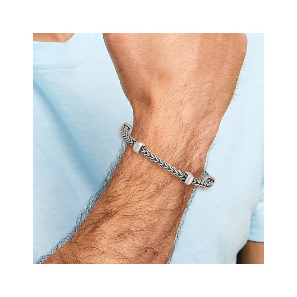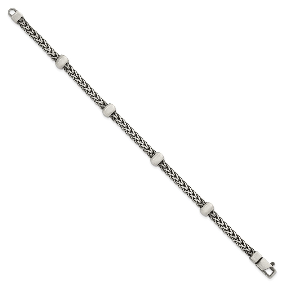 Sterling Silver Black Ruthenium-plated Brushed Franco Chain and Beads Mens 8.5 inch Bracelet