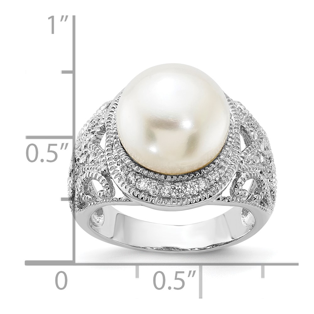 Sterling Silver Rhodium-plated CZ and Freshwater Cultured Pearl Ring