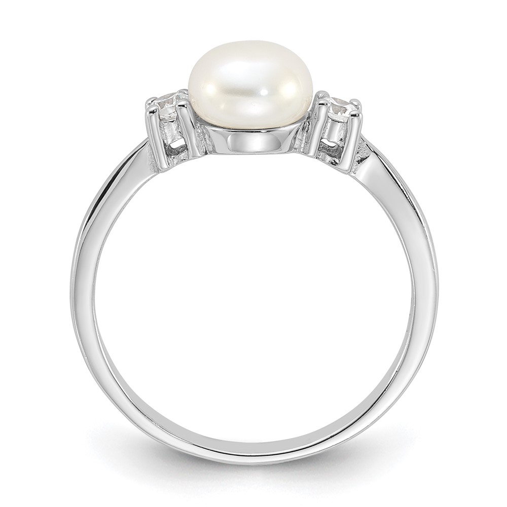 Sterling Silver Rhodium-plated 6-7mm White Freshwater Cultured Pearl and CZ Ring