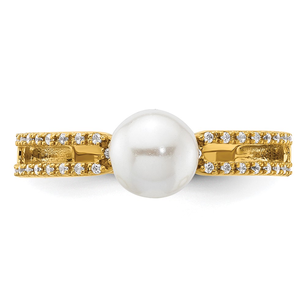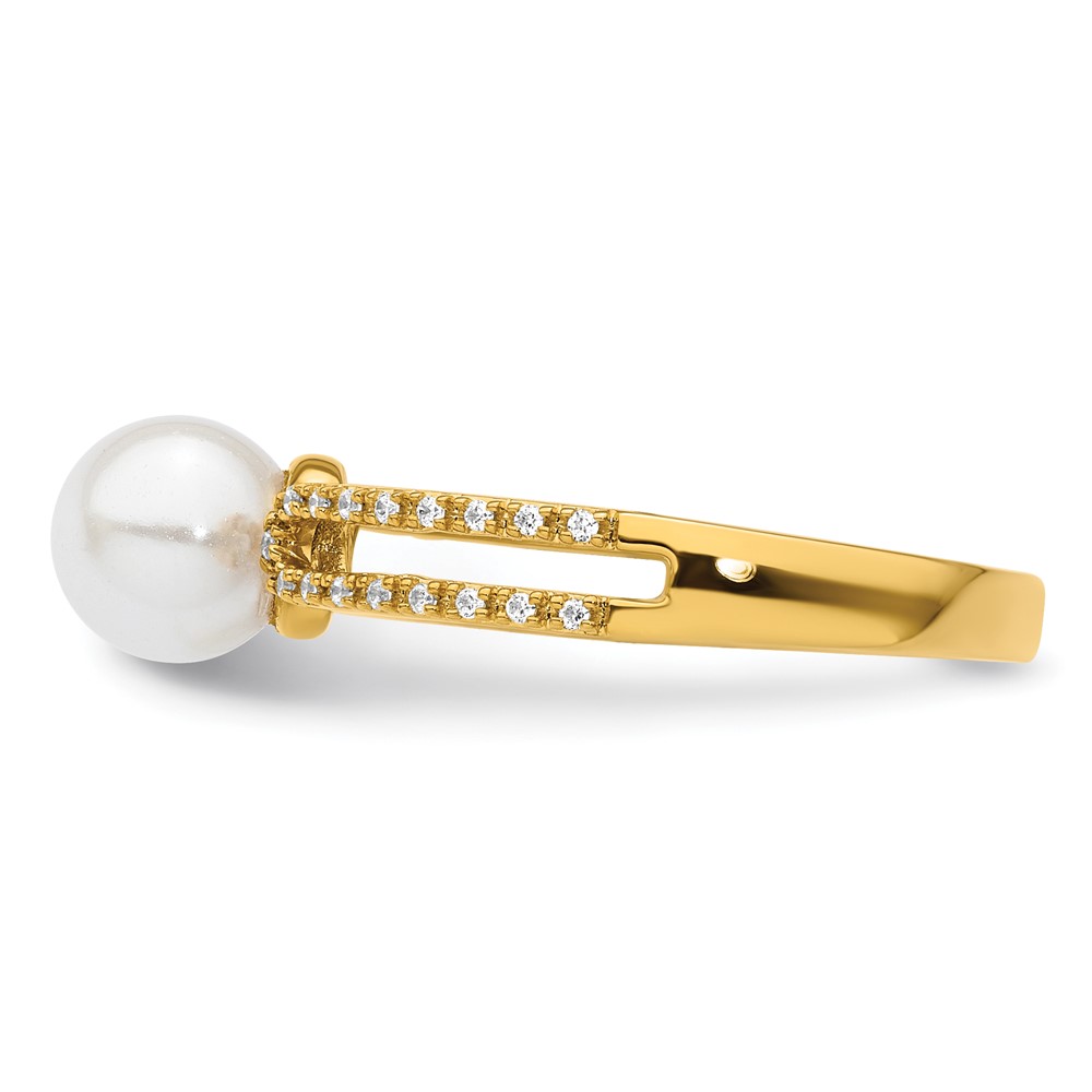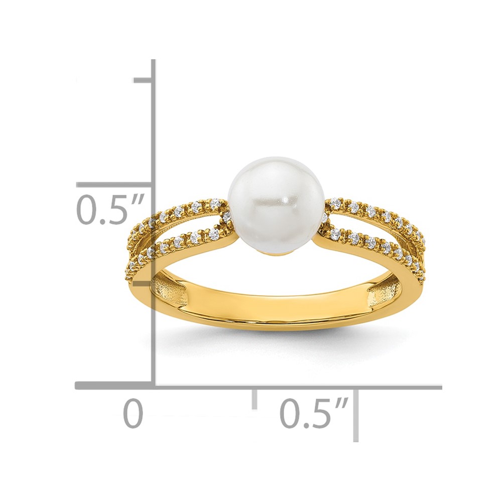 14K Polished White Freshwater Cultured Pearl and 1/10 carat Diamond Fashion Ring