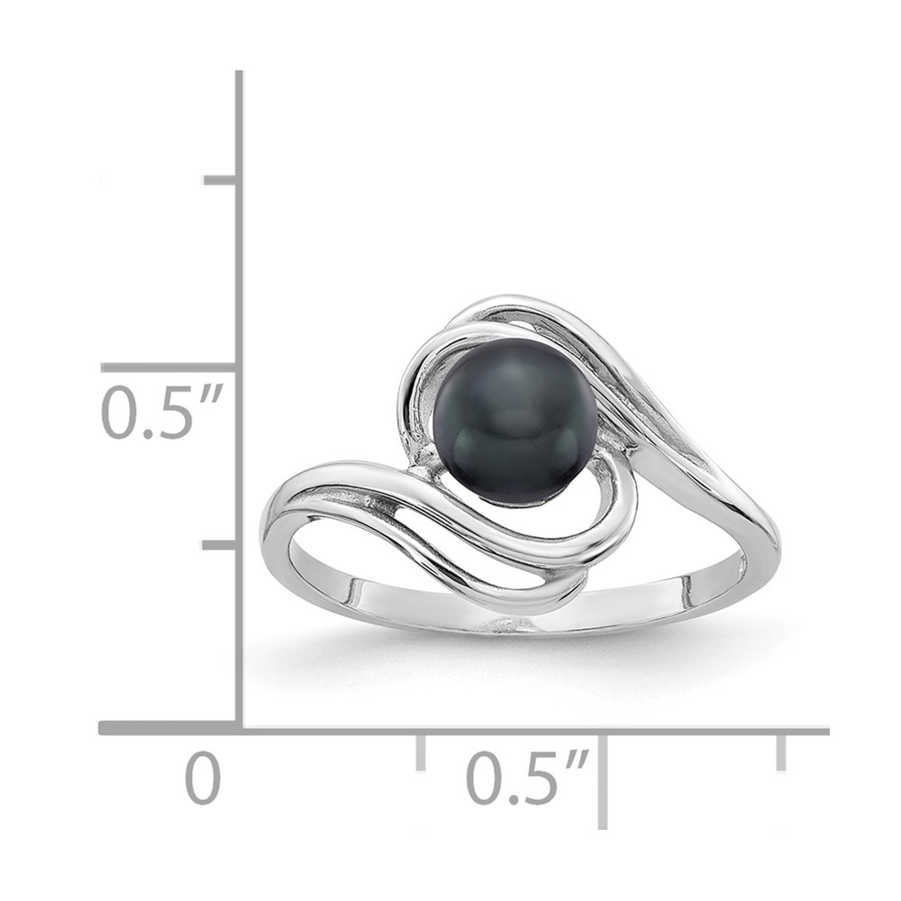Sterling Silver Rhodium-plated 5-7mm White Button Freshwater Cultured Pearl and CZ Adjustable Ring