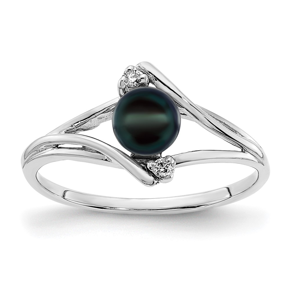 Sterling Silver Rhodium-plated 8-9mm White Freshwater Cultured Pearl and CZ Ring