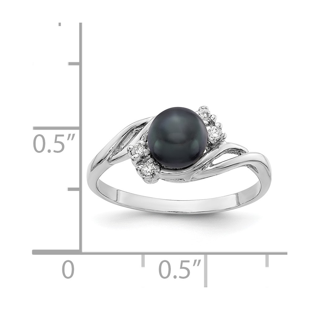 14K White Gold Polished 1/10 carat Diamond and White Freshwater Cultured Pearl Size 7 Ring