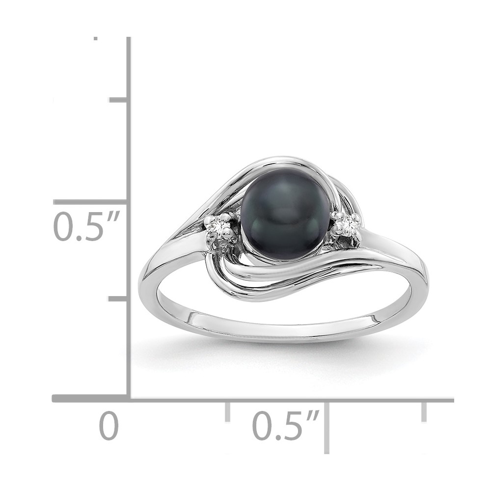 Sterling Silver Rhodium-plated 9-10mm White Button Freshwater Cultured Pearl and CZ Ring
