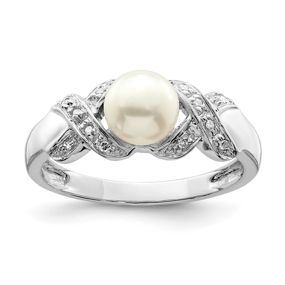 Sterling Silver Rhodium 6mm FW Cultured Button Pearl Ring