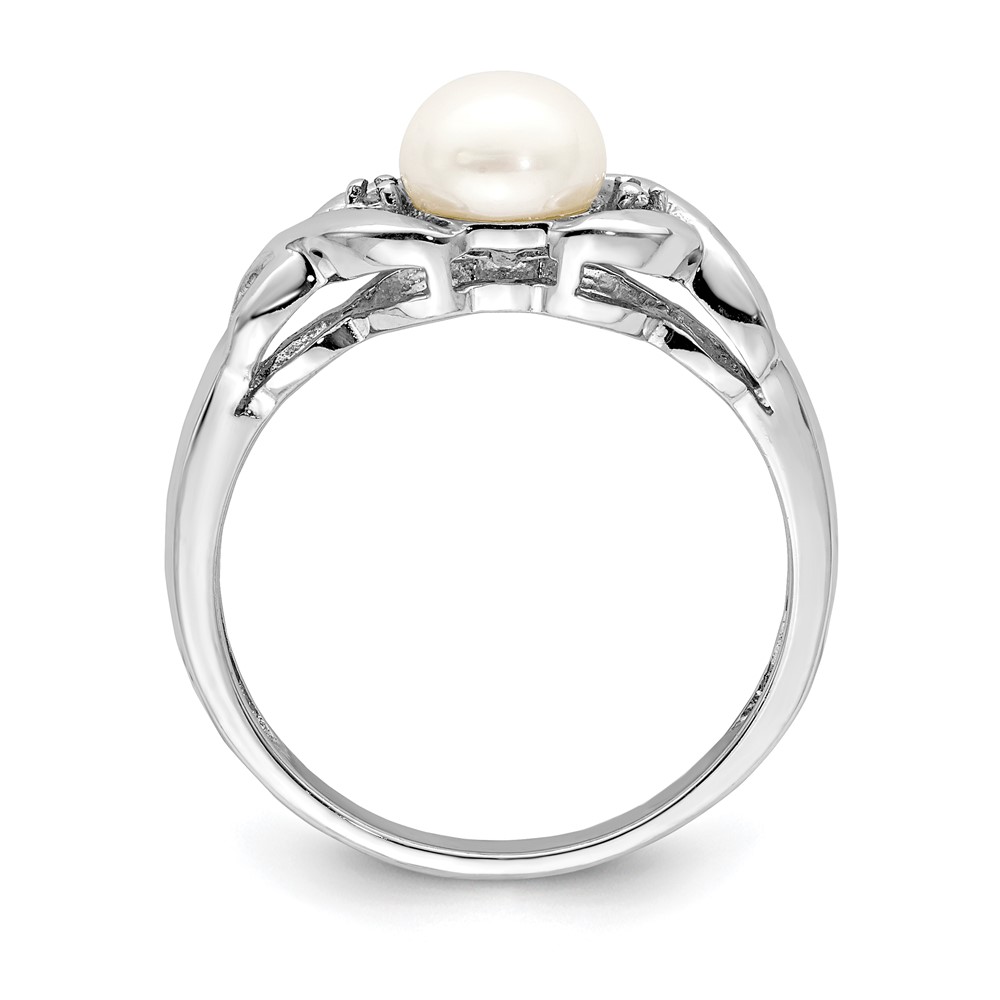Sterling Silver Rhodium FW Cultured Button Pearl & Diamond Ring