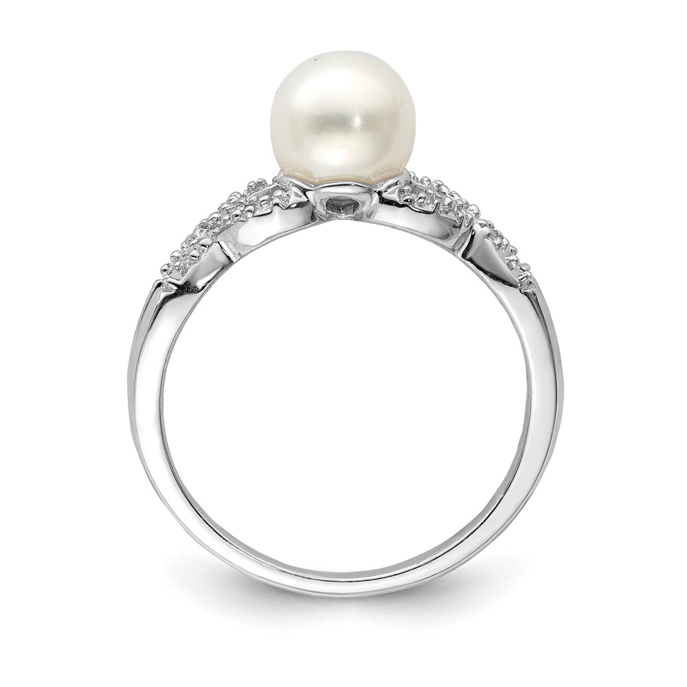 Sterling Silver Rhodium Plated Diamond and FW Cultured Pearl Ring
