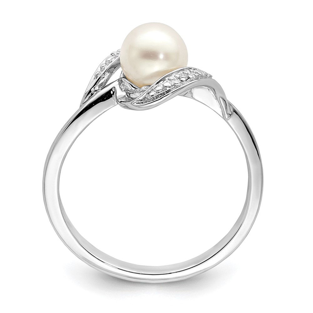 Sterling Silver Rhodium Plated Diamond and FW Cultured Pearl Ring