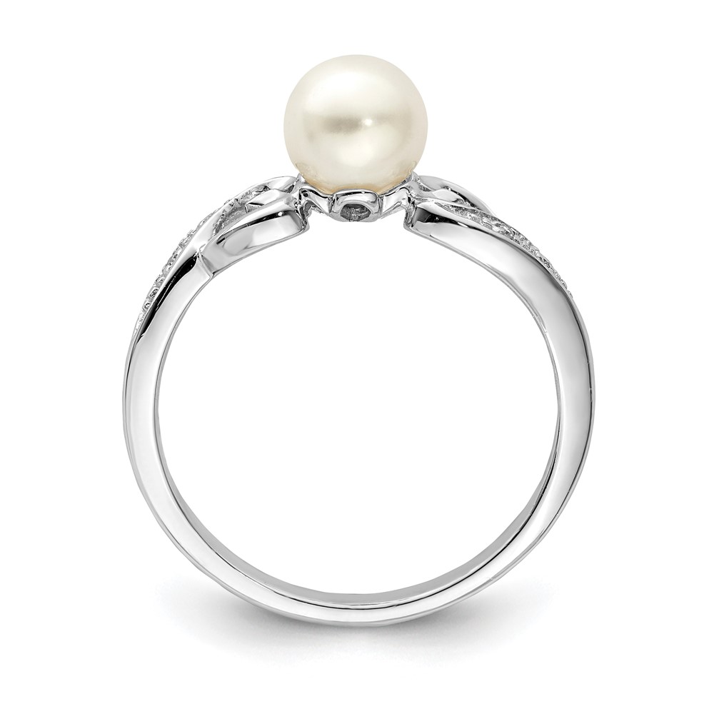 Sterling Silver Rhodium Plated Diamond and FW Cultured Pearl Ring