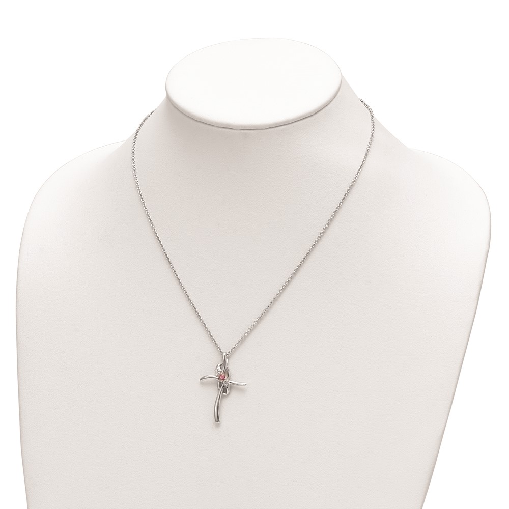 Survivor Collection 10K White Gold Rhodium-plated 16 Inch White and Pink Topaz Grace Cross Necklace with 2 Inch Extender