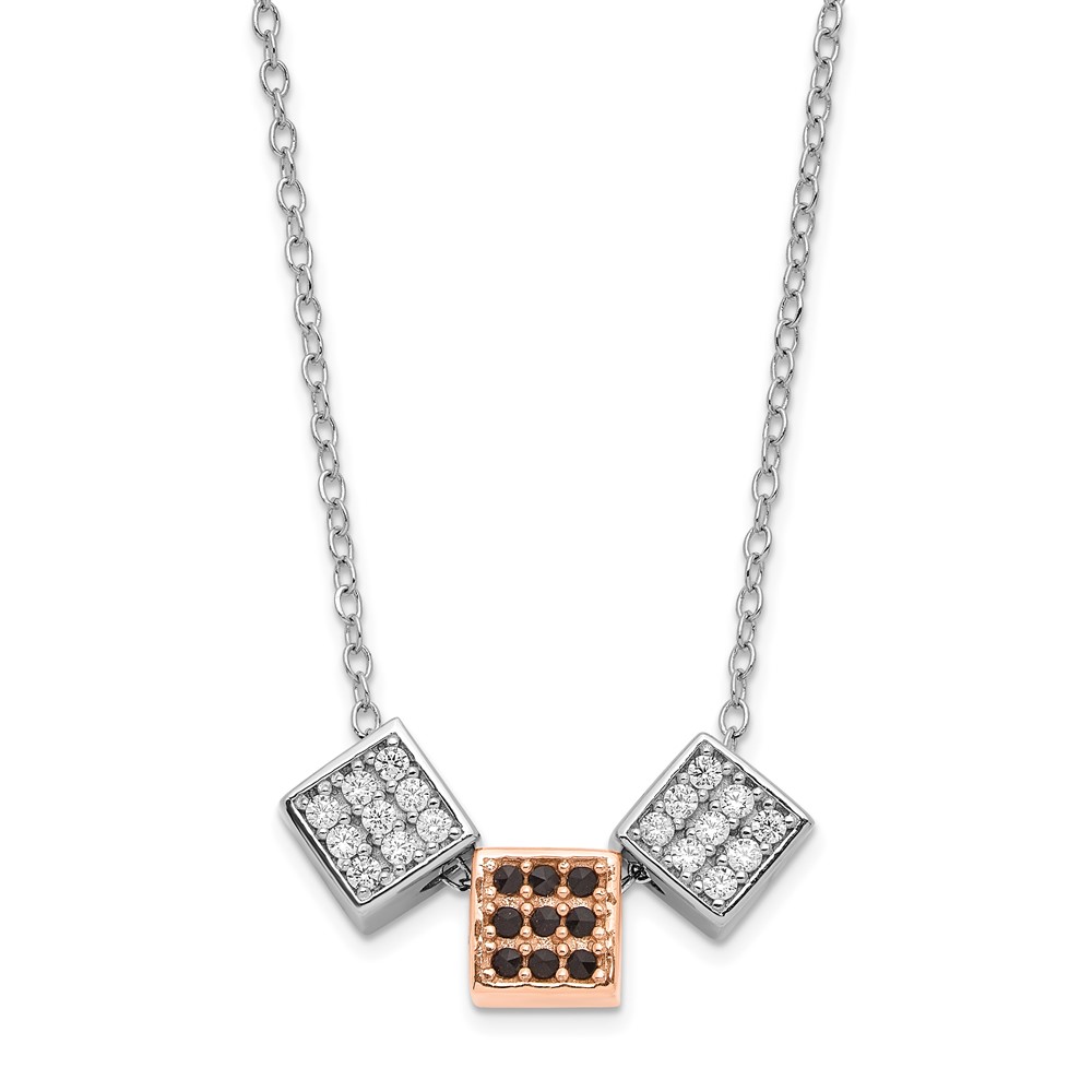 Sterling Silver Rhodium & Rose-tone w/ Black Onyx & CZ Cube Necklace