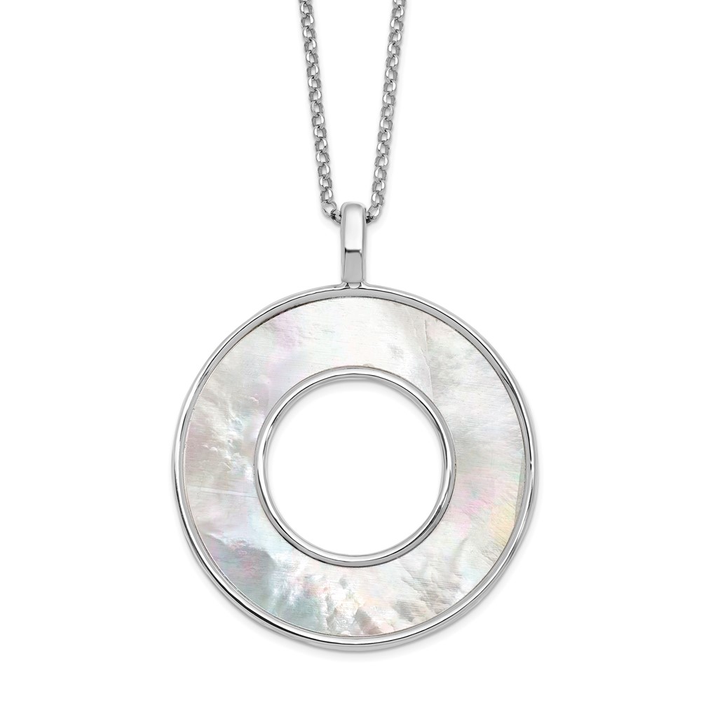 Leslie's Sterling Silver RH-plated MOP Circle Pendant Necklace