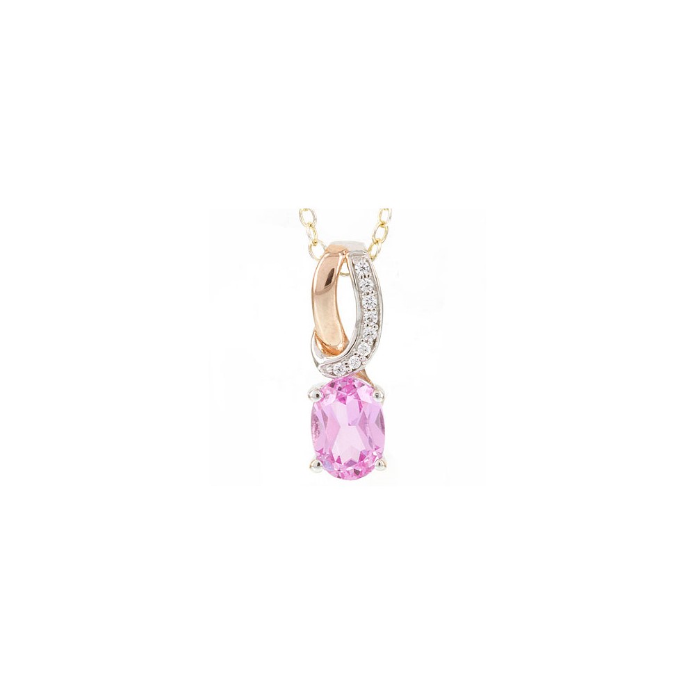 SS Created Sapphire & Diamond Pendant Necklace