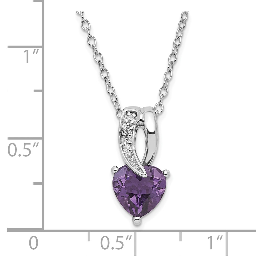 Sterling Silver Polished Amethyst & Diamond Heart Necklace