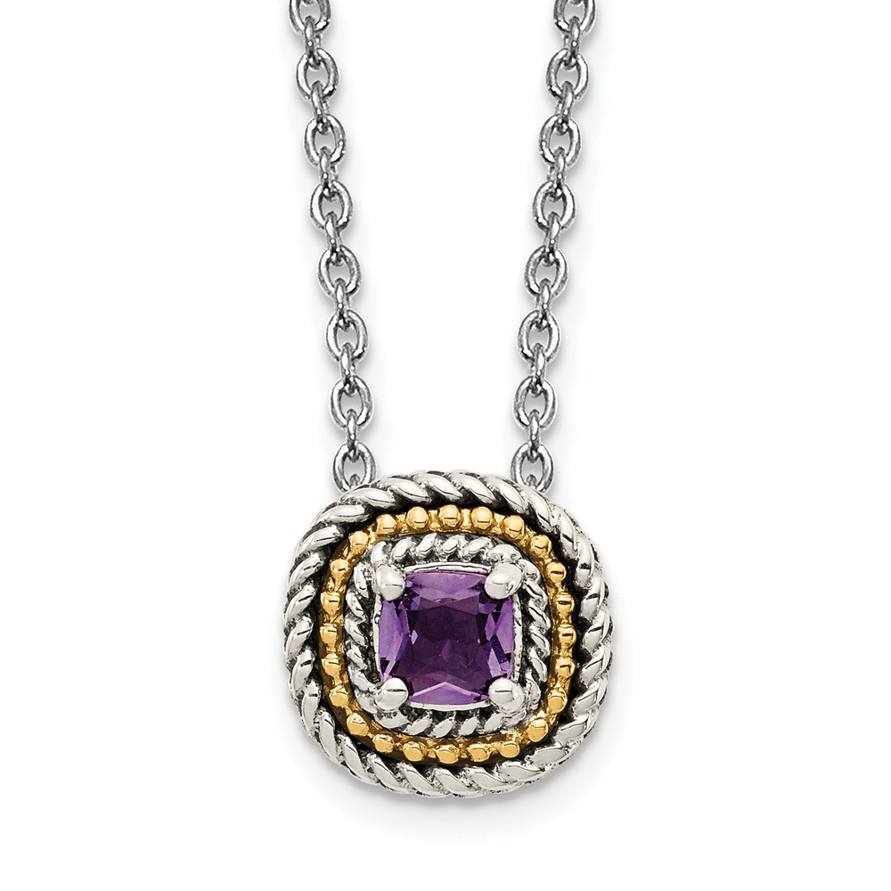 Shey Couture Sterling Silver with 14K Accent 18 Inch Antiqued Cushion Amethyst Necklace