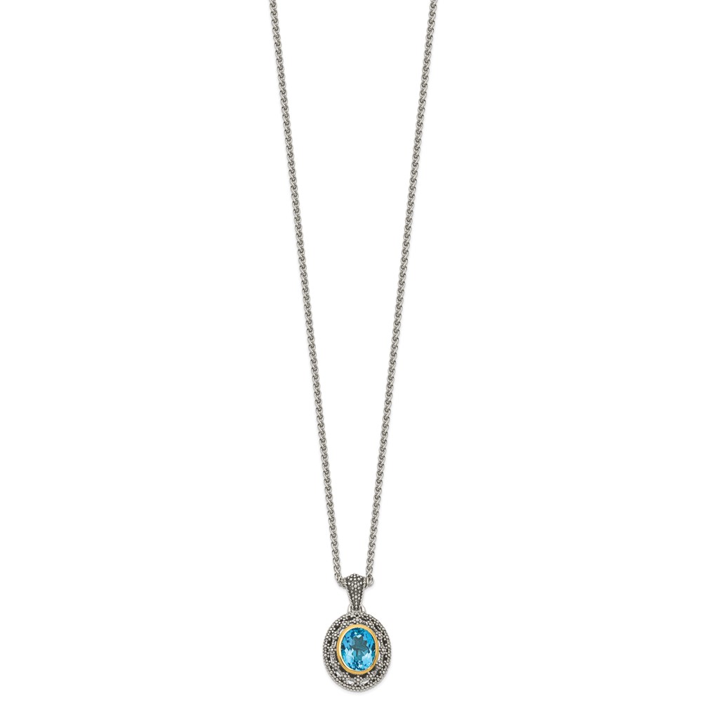 Shey Couture Sterling Silver with 14K Accent 18 Inch Antiqued Light Swiss Blue Topaz Oval Necklace