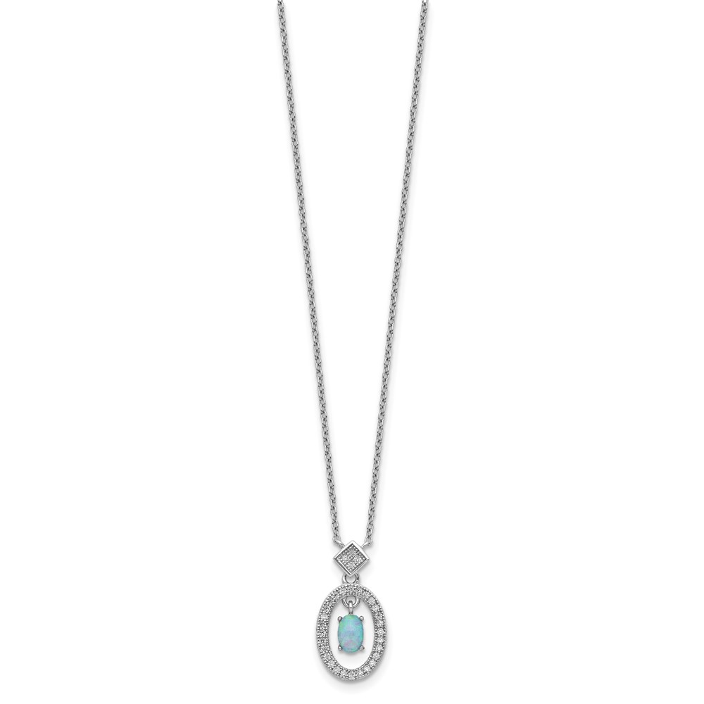 Sterling Silver Rhodium-plated Clear CZ Oval with Lab Created Opal Oval Dangle 16 inch Necklace with 2 inch extension
