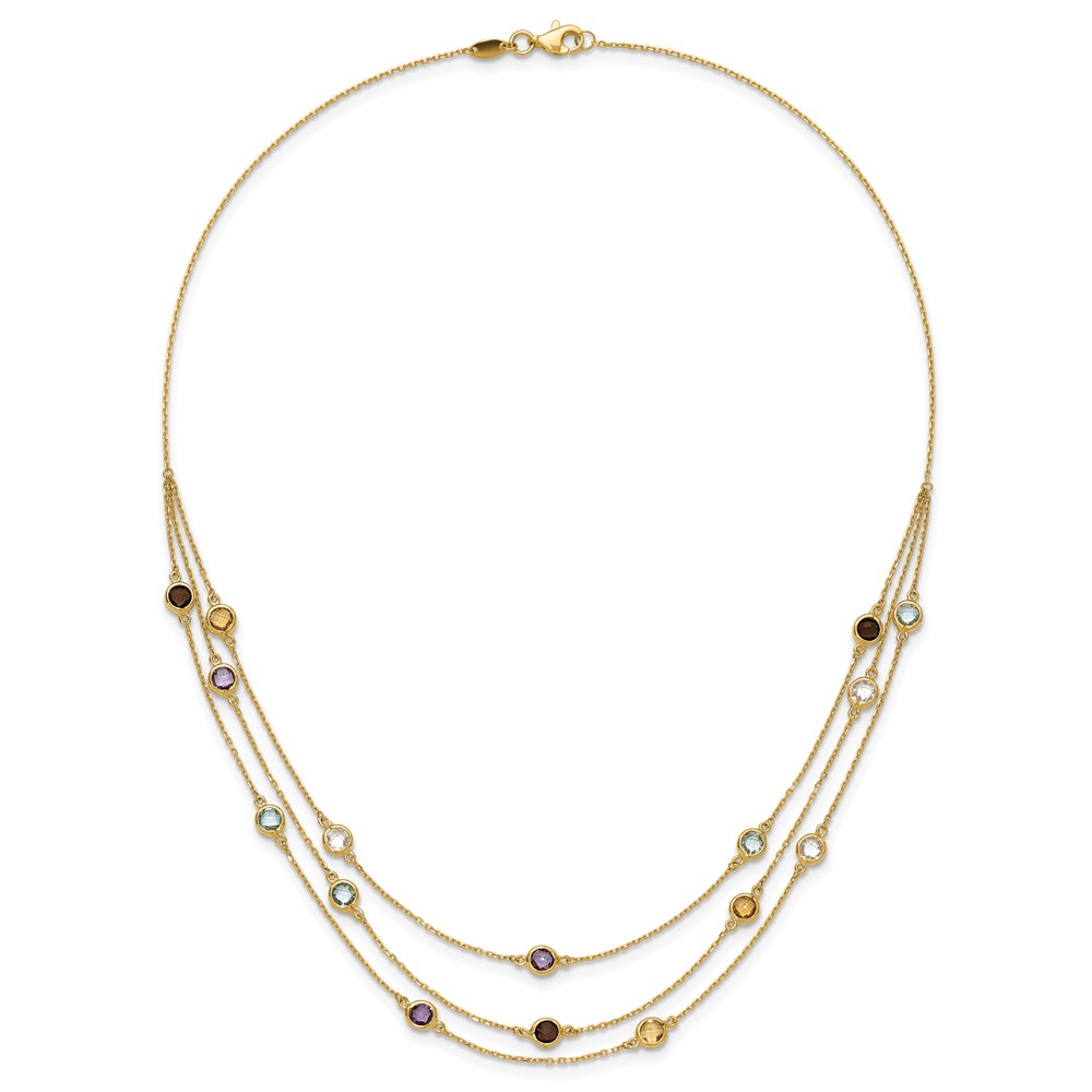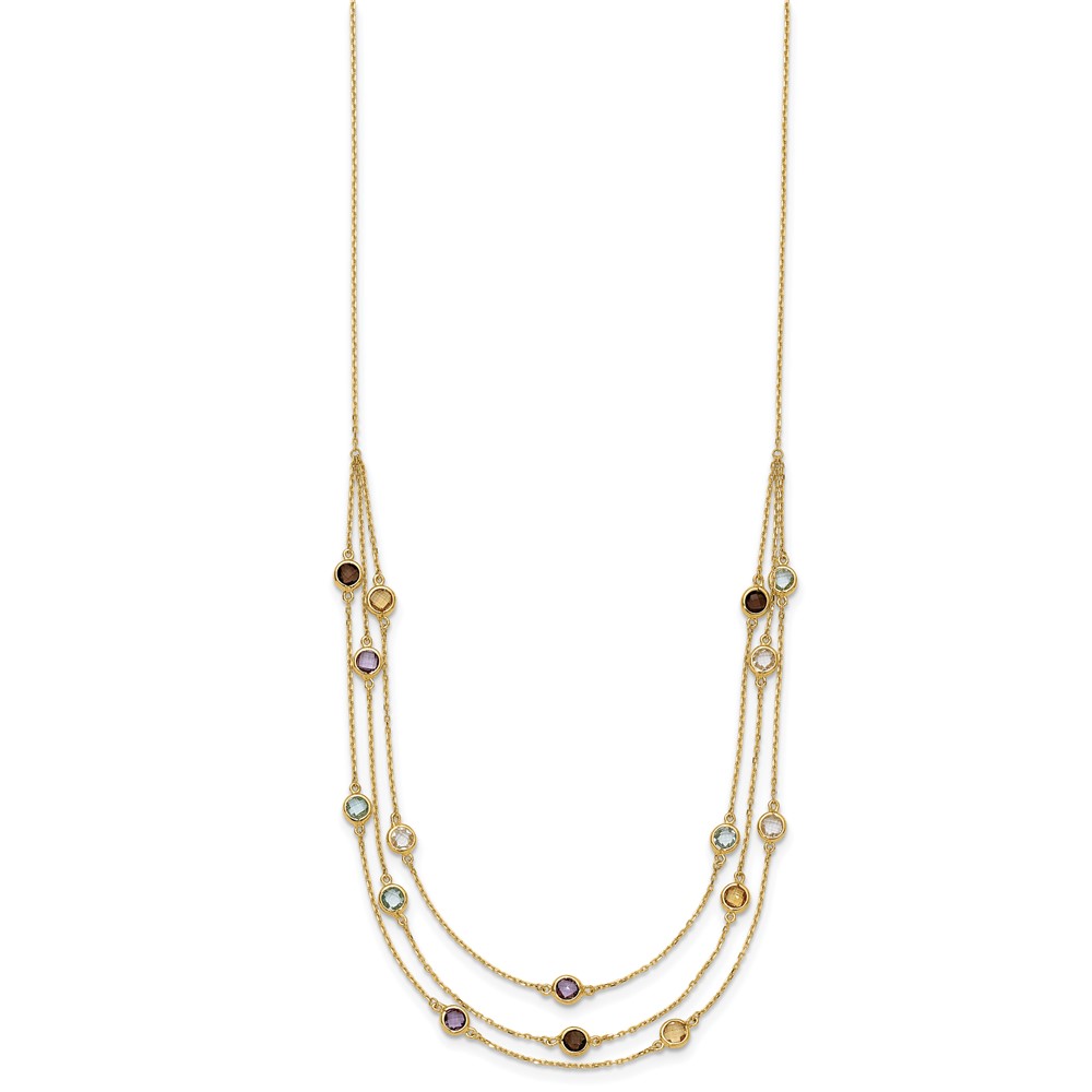 14K Smoky Quartz/White Quartz/Blue Topaz/Citrine/Amethyst 3-strand 17 inch Necklace