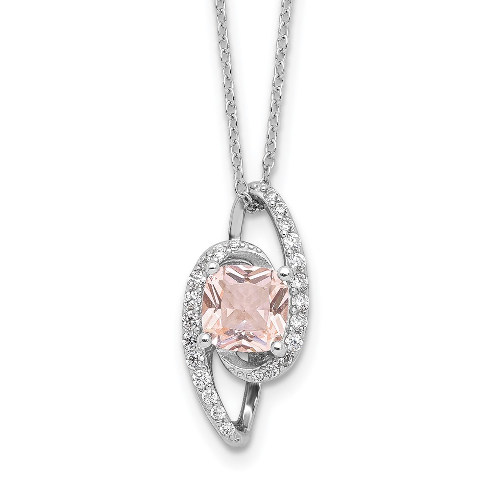 Cheryl M Sterling Silver Rhodium-plated Cushion-cut Simulated Morganite & White Brilliant-cut CZ 18 Inch Necklace with 2 Inch Extender
