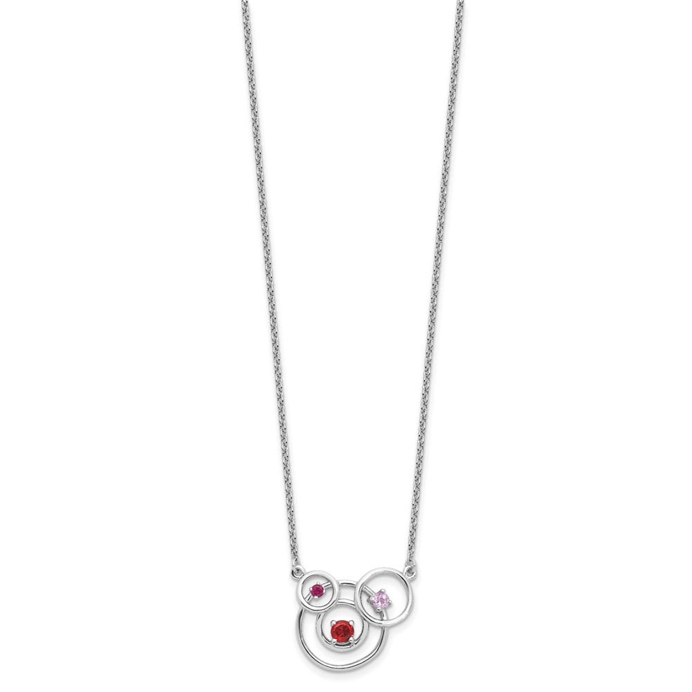 Sterling Silver Polished Amethyst, Garnet and Pink Tourmaline Circles with 2 Inch Extension Necklace