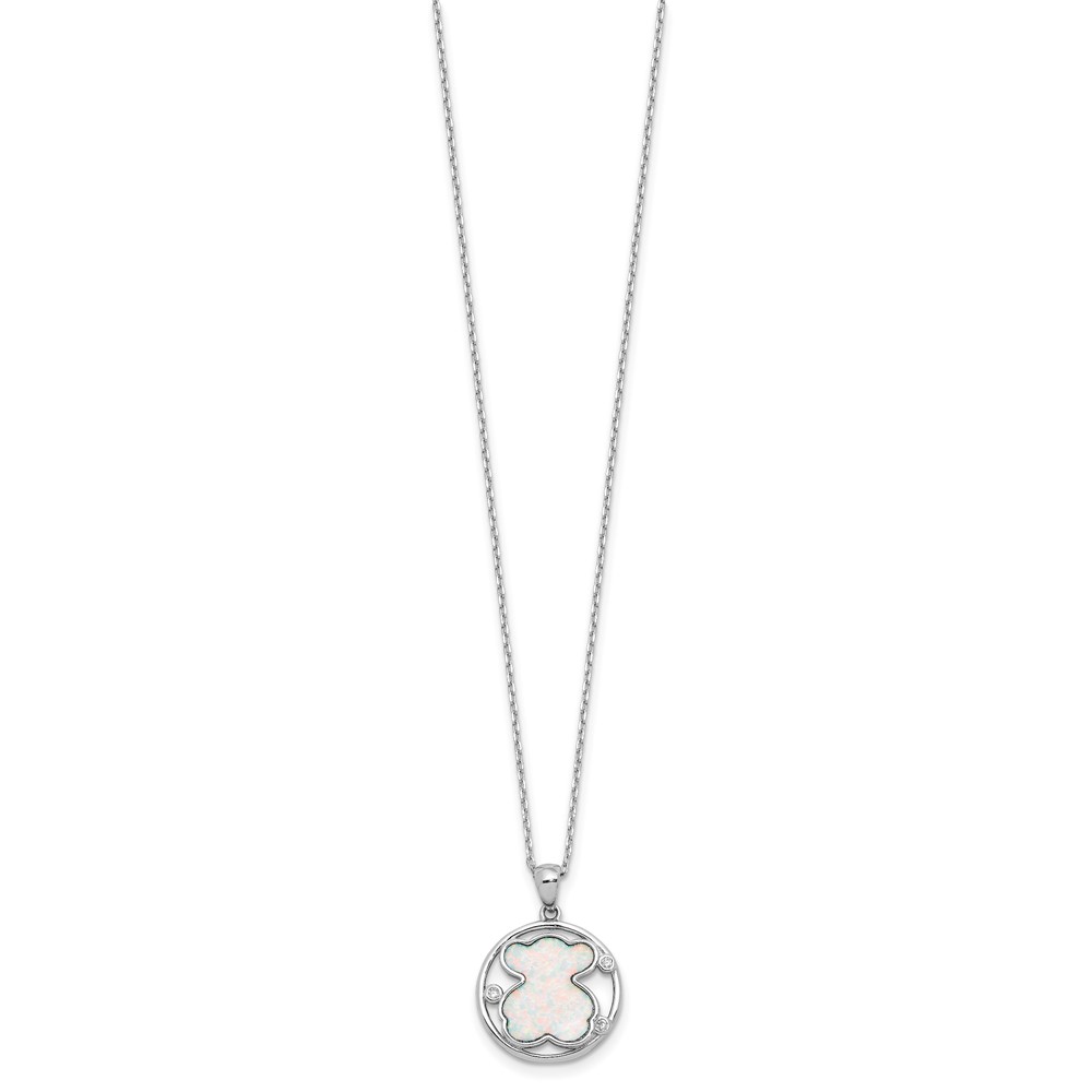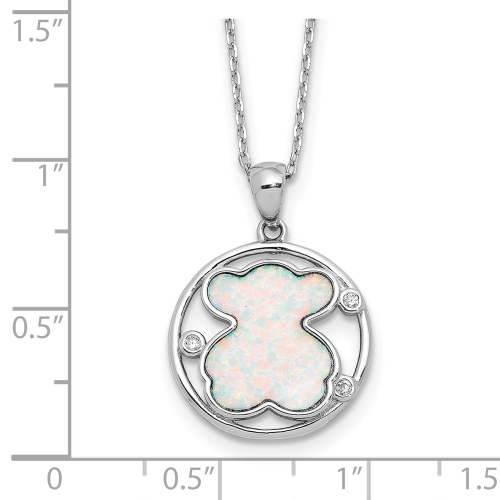 Sterling Silver RH-plated CZ Cr Opal Inlay Bear 16in w/2in ext Necklace