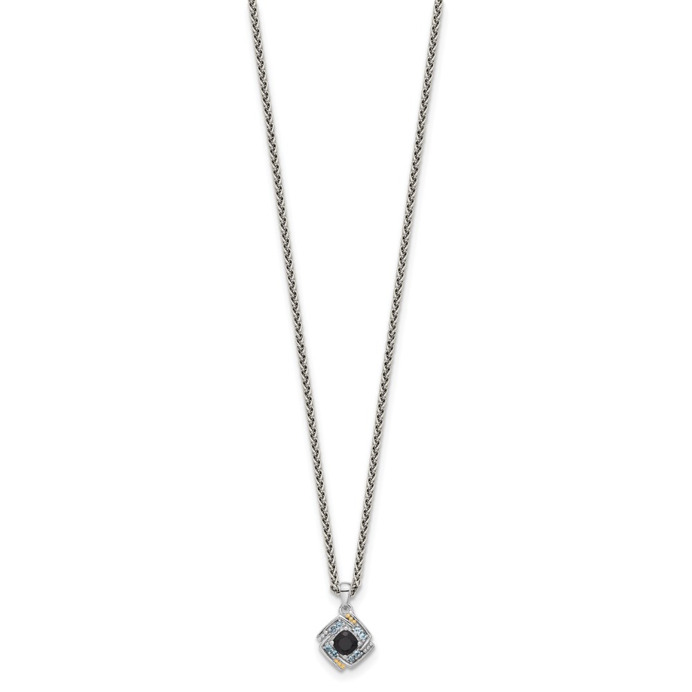 Shey Couture Sterling Silver Rhodium-plated with 14k Accent .49 Onyx and .16 Swiss Blue Topaz 18 inch Necklace