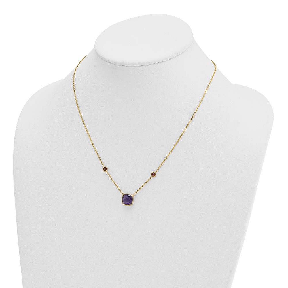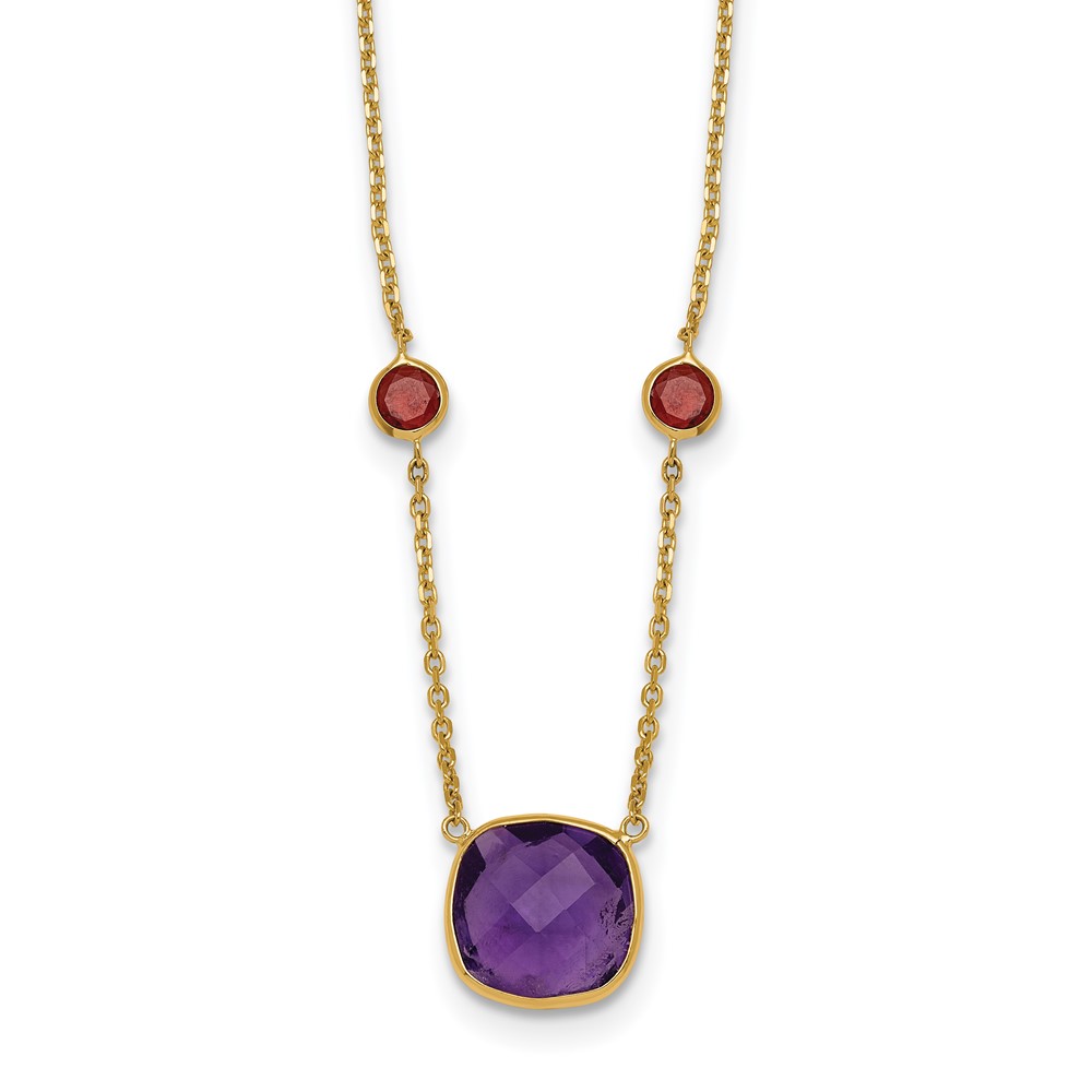 Herco 14K Polished Amethyst and Garnet 16 Inch with 2 Inch Extension Necklace