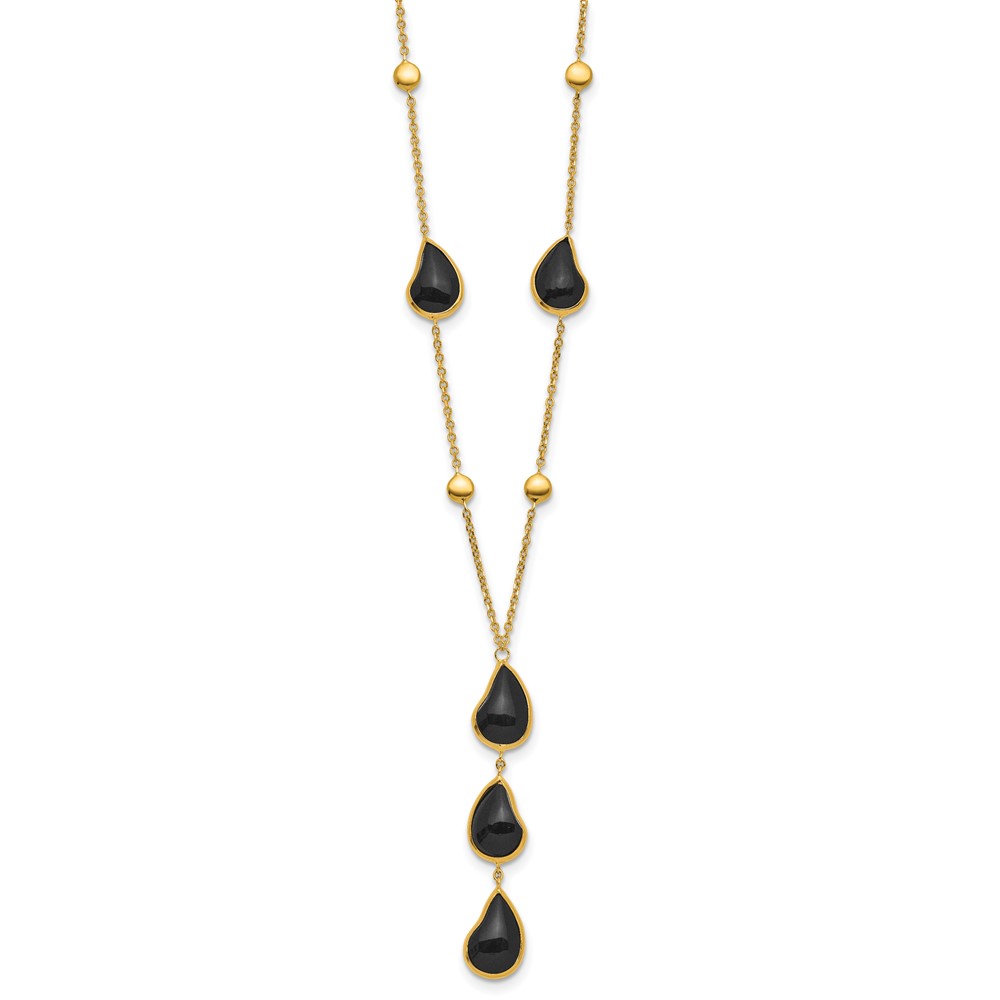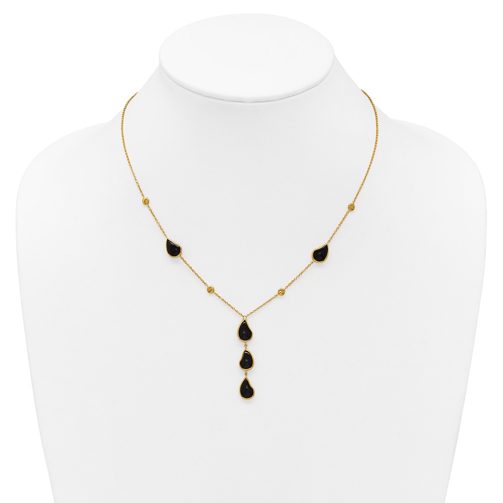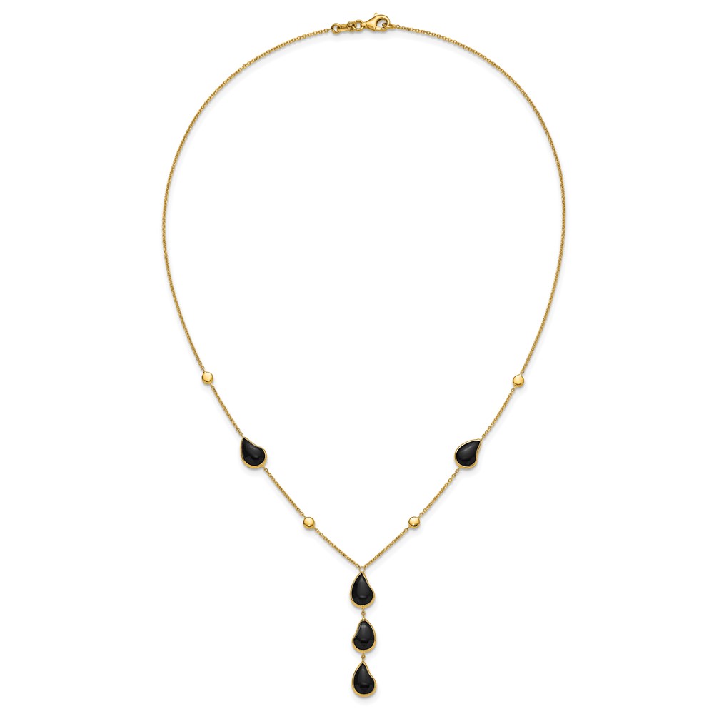 Herco 14K Polished Fancy Onyx Teardrop Lariat 18 Inch Necklace