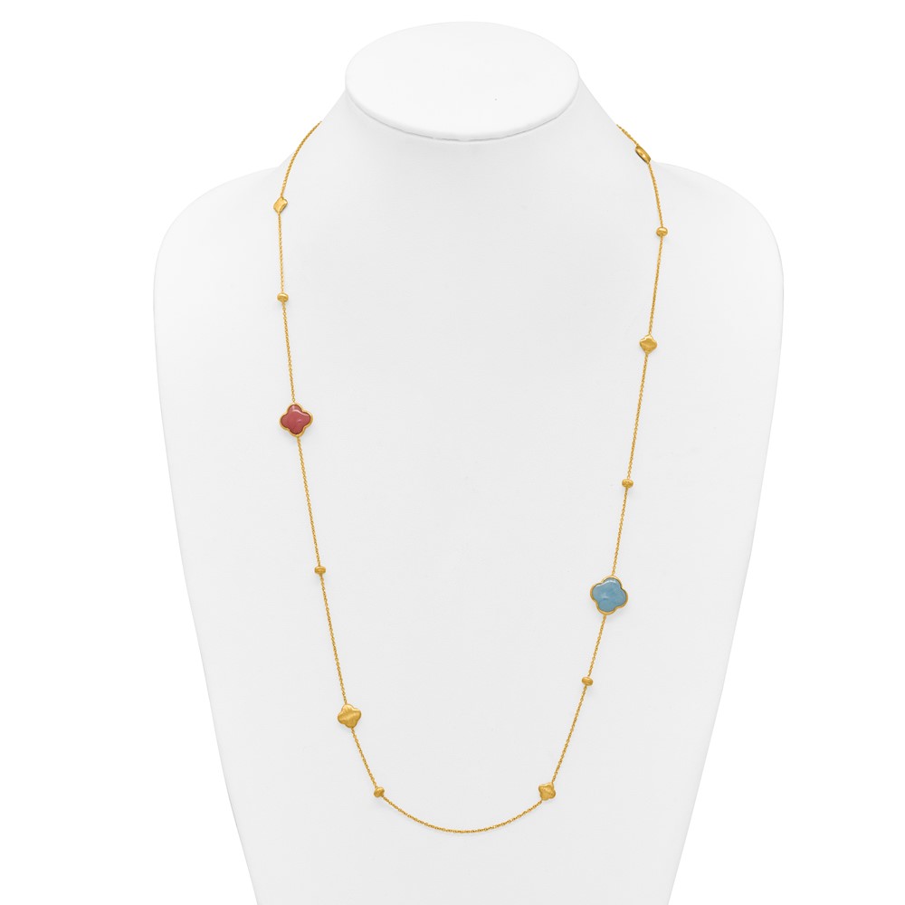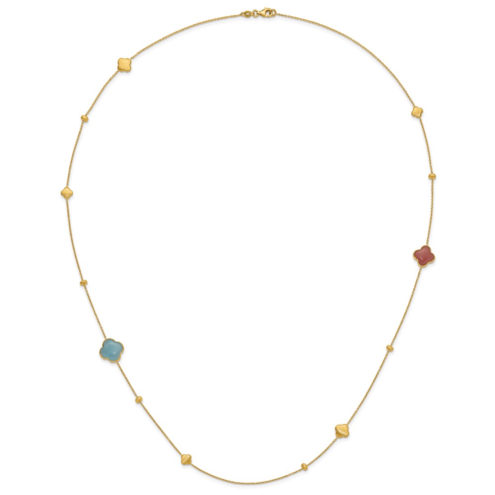 Herco 14K Brushed Aquamarine and Chalcedony Quatrefoil 30 Inch Station Necklace