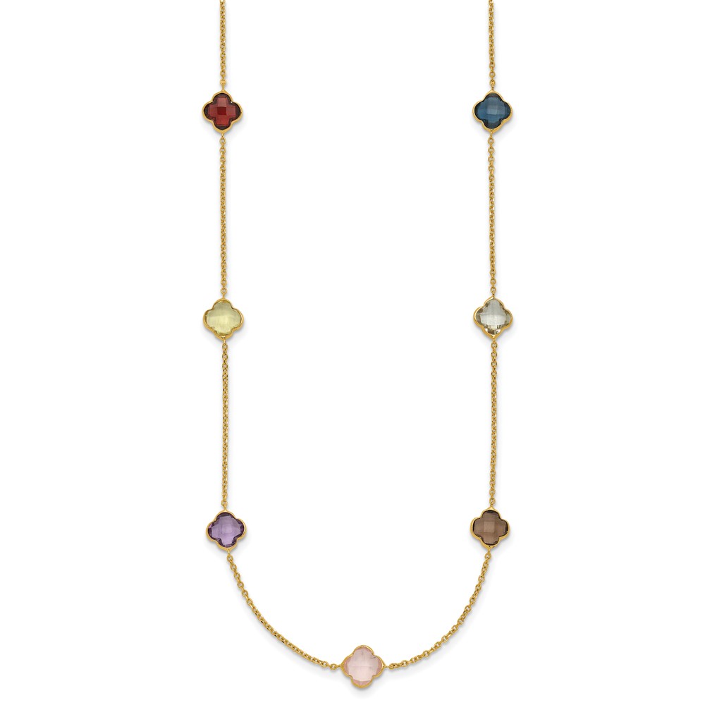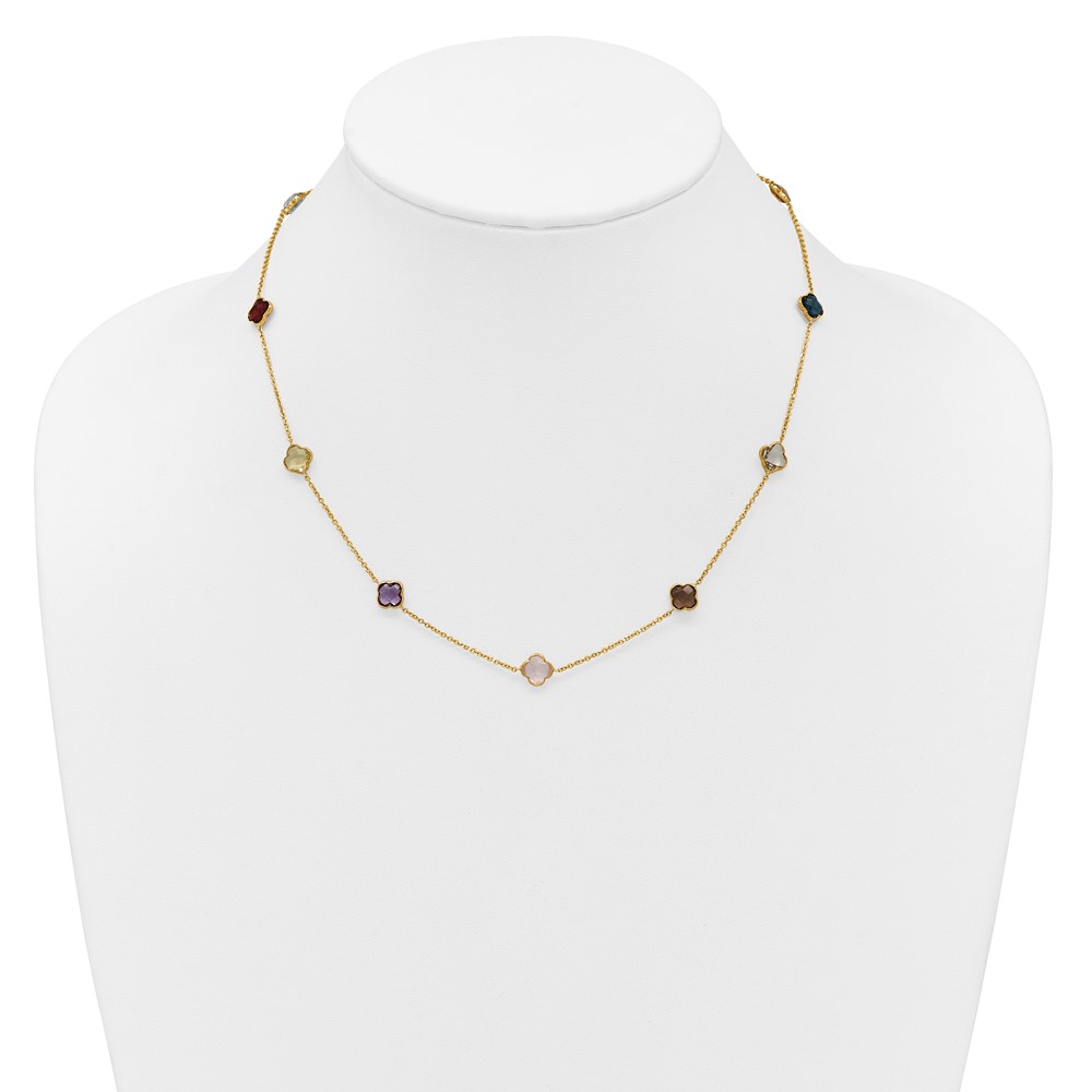 Herco 14K Polished Gemstone Quatrefoil Station 18in Necklace