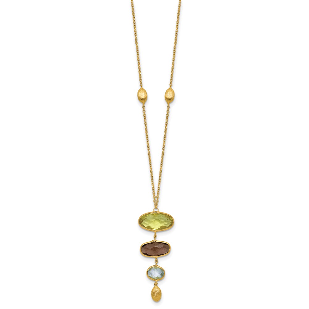 Herco 14K Brushed Fancy Oval Multi-Gemstone 18in Necklace