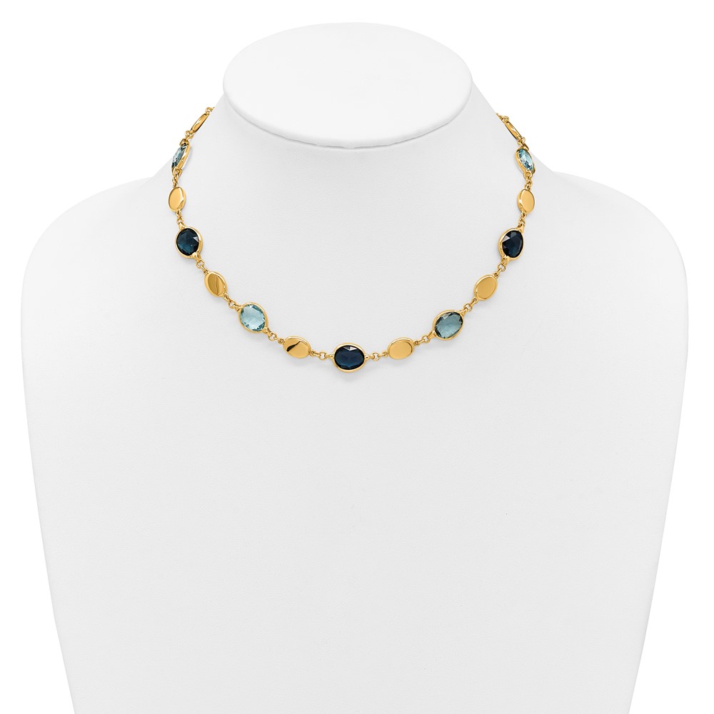 Herco 14K Sky/London Blue Topaz and Polished Ovals 16 Inch with 2 Inch Extension Necklace
