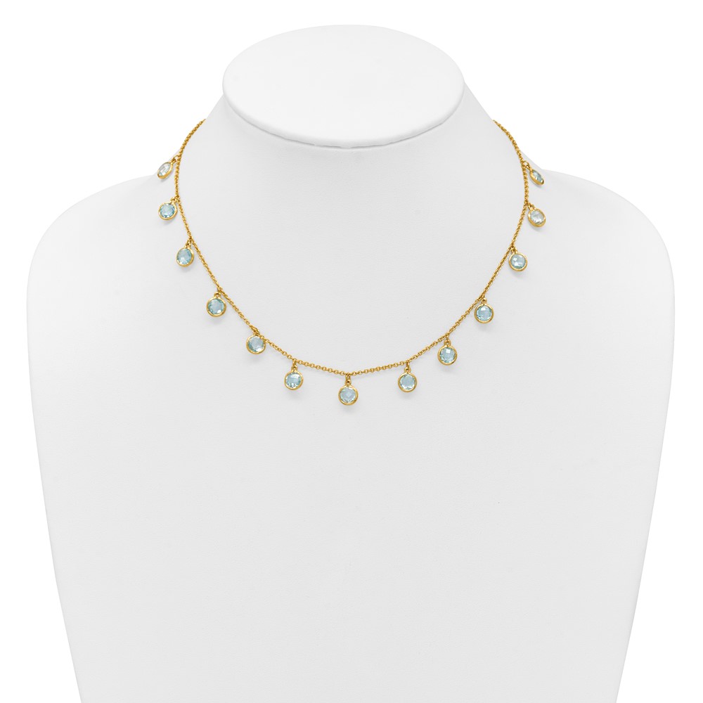 Herco 14K Polished and Textured Dangling Blue Topaz 16.5in Necklace