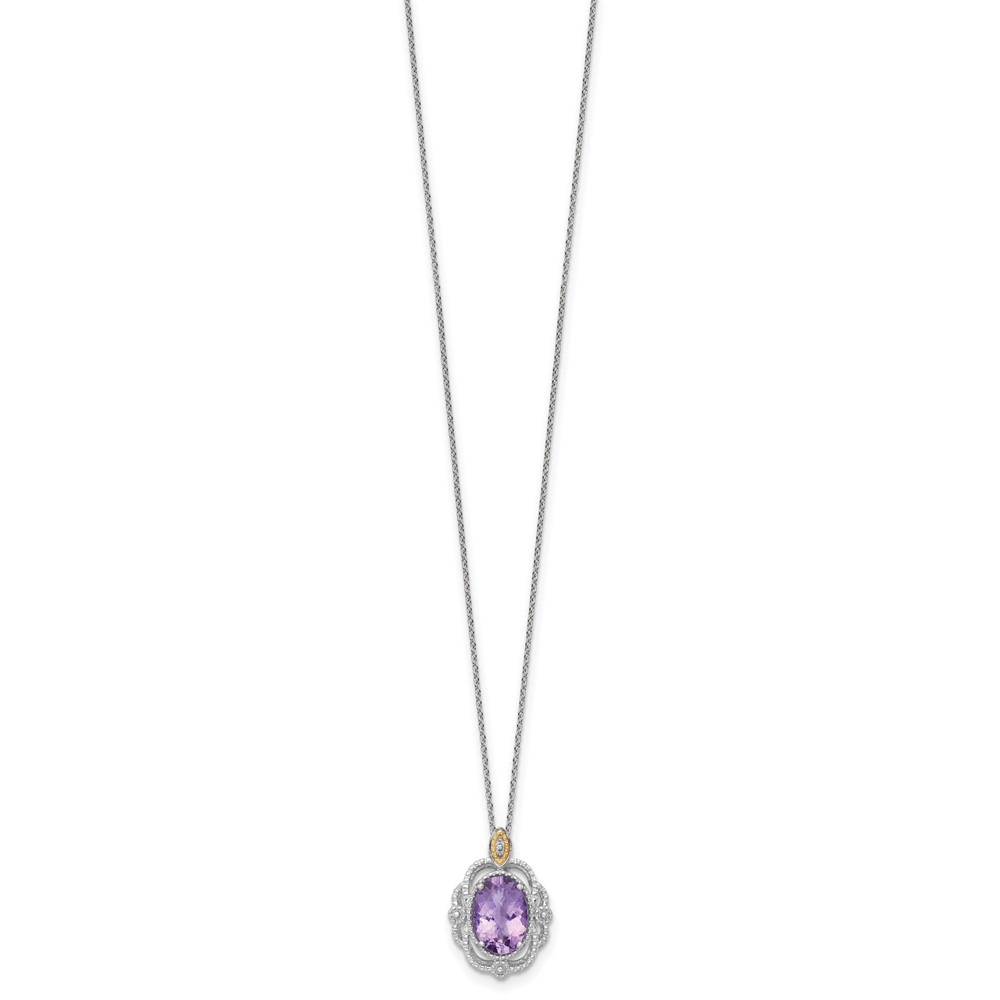 Shey Couture Sterling Silver Rhodium-plated with 14k Accent Oval Amethyst 18 inch with 2 inch Extension Vintage Necklace