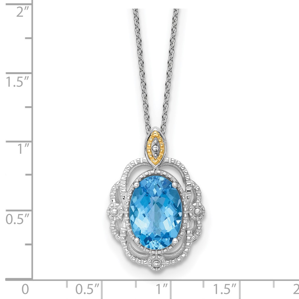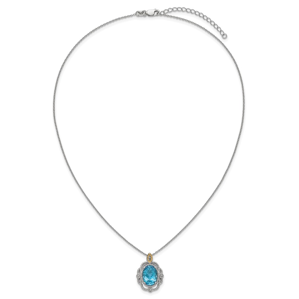 Shey Couture Sterling Silver Rhodium-plated with 14k Accent Oval Light Swiss Blue Topaz 18 inch with 2 inch Extension Vintage Necklace