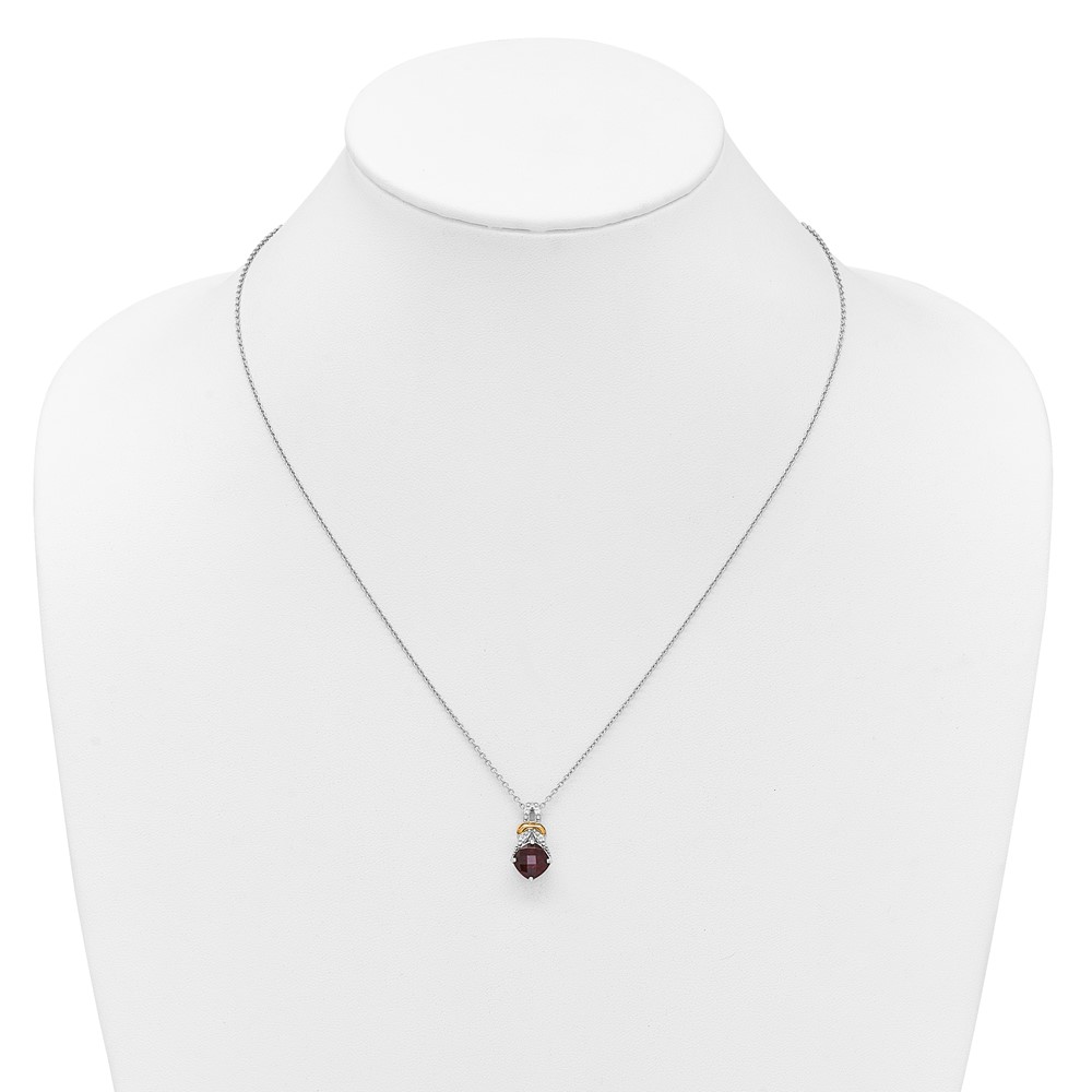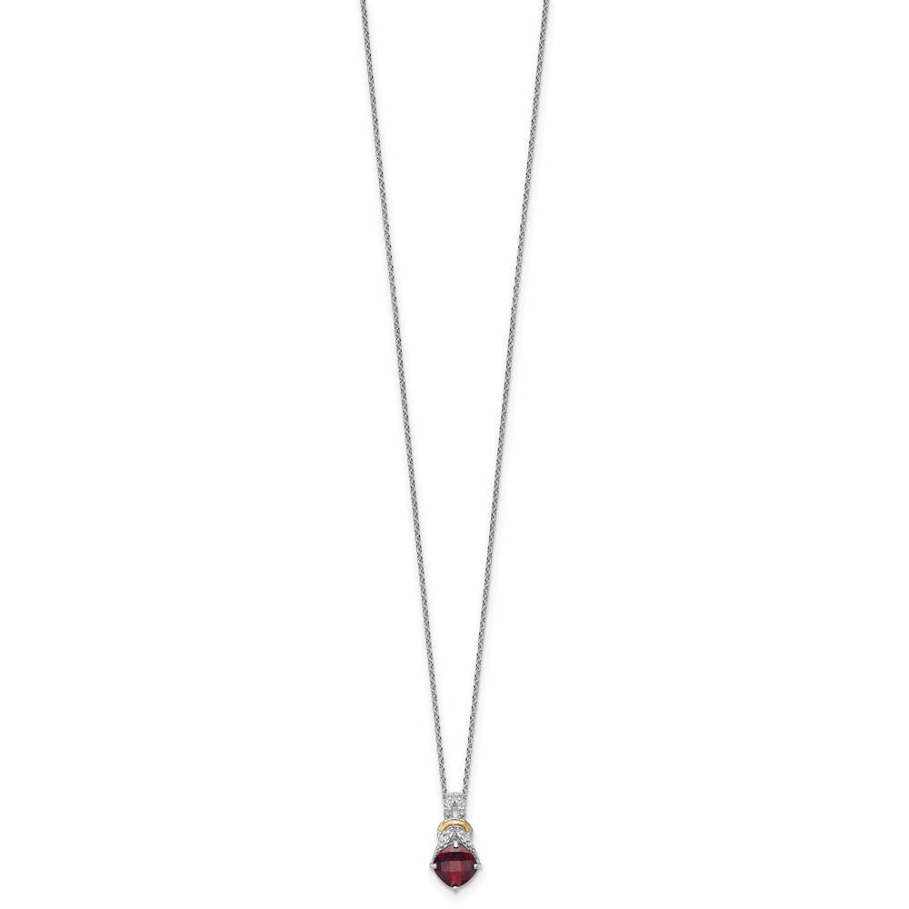 Shey Couture Sterling Silver Rhodium-plated with 14k Accent Checker Cushion Garnet and .04ct. Diamond 18 inch w/2 inch Extension Necklace