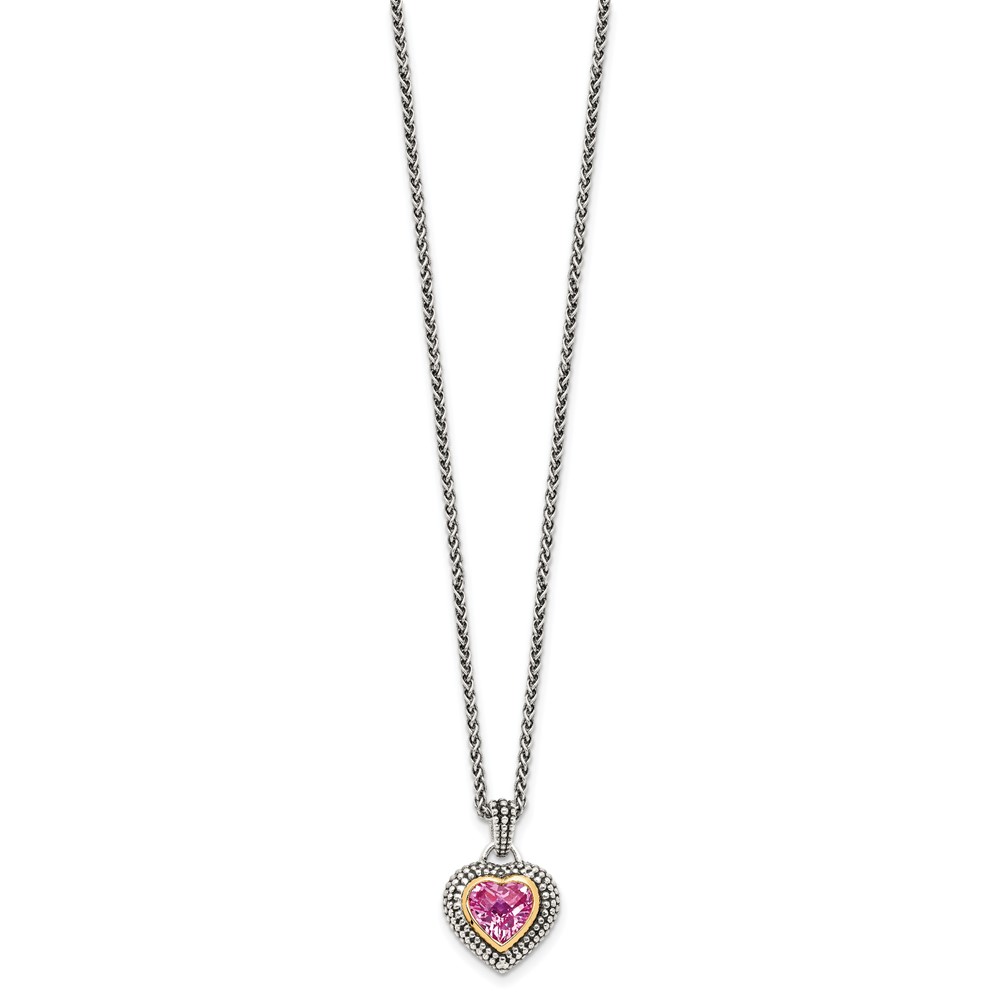 Shey Couture Sterling Silver with 14K Accent 18 Inch Antiqued Heart Bezel Created Pink Sapphire Necklace