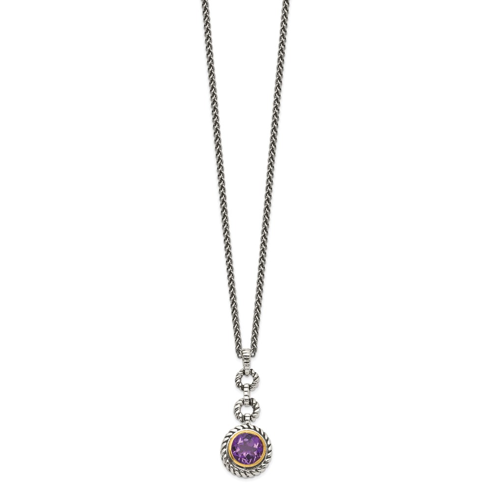 Shey Couture Sterling Silver with 14K Accent 18 Inch Antiqued Round Amethyst Necklace