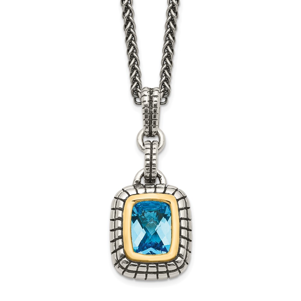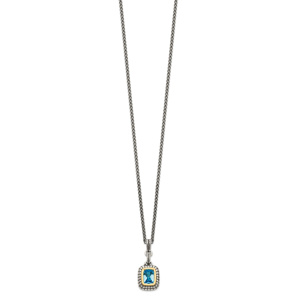 Shey Couture Sterling Silver with 14K Accent 18 Inch Antiqued Cushion Bezel Swiss Blue Topaz Necklace