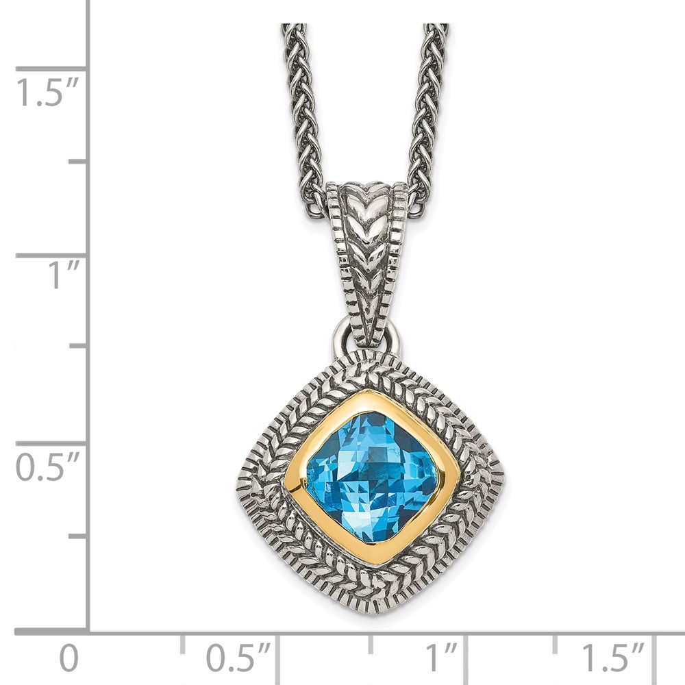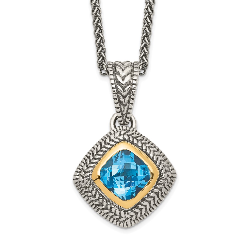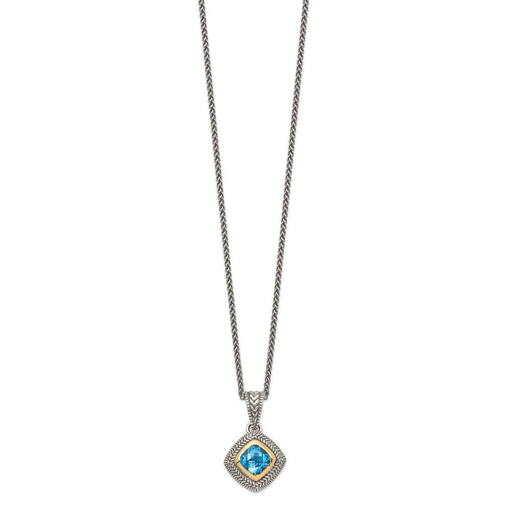 Shey Couture Sterling Silver with 14K Accent 18 Inch Antiqued Cushion Bezel Sky Blue Topaz Necklace