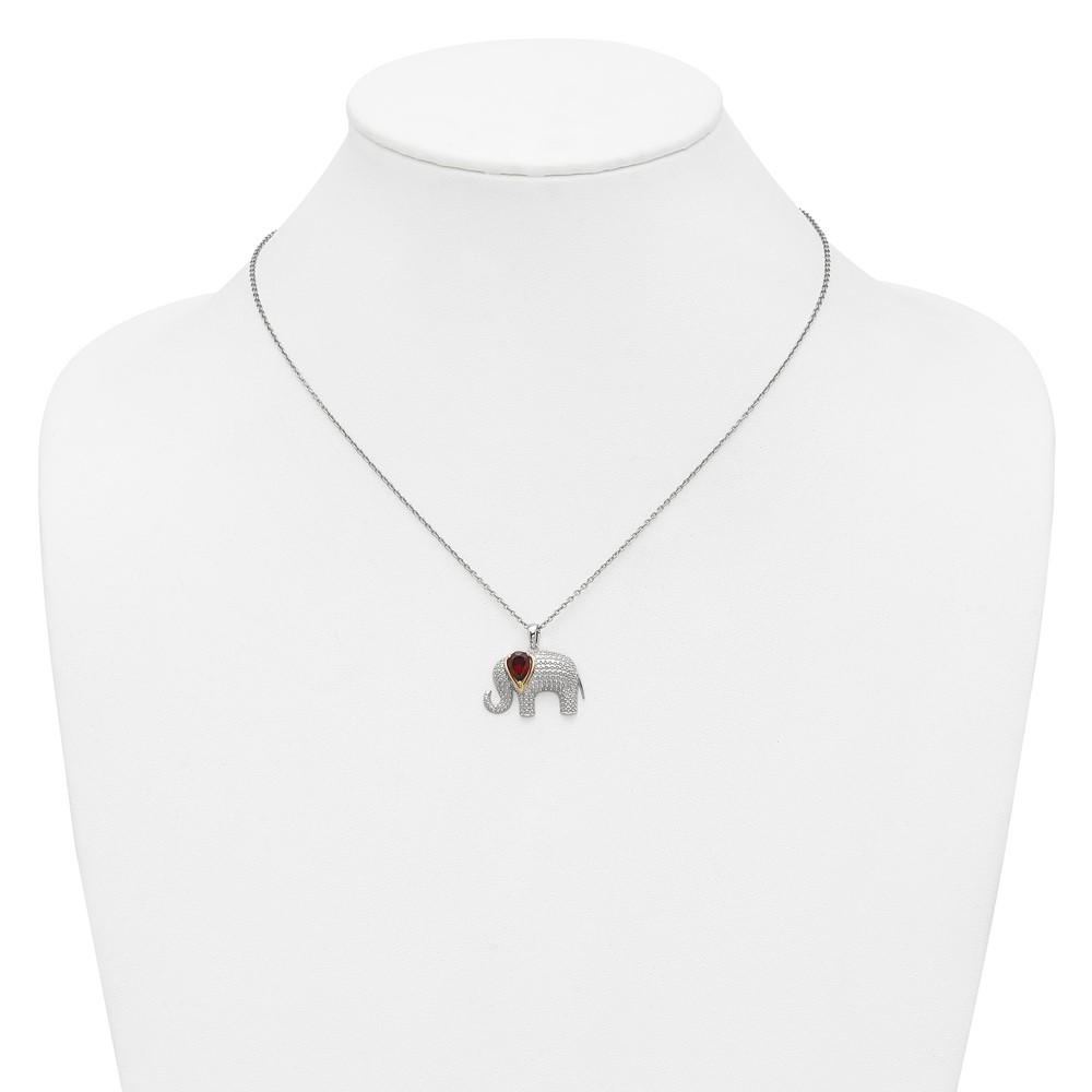 Sterling Silver with 14K Accent Rhodium-plated Gemstone & Diamond Elephant Necklaces