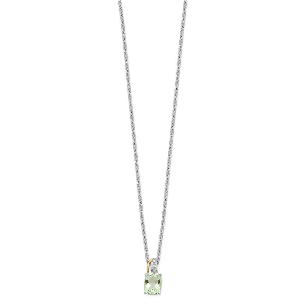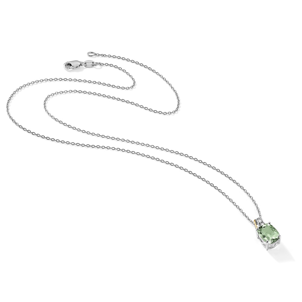 Brilliant Gemstones Sterling Silver with 14K Accent Rhodium-plated Green Quartz and Diamond 18 Inch Necklace with 2 Inch Extender