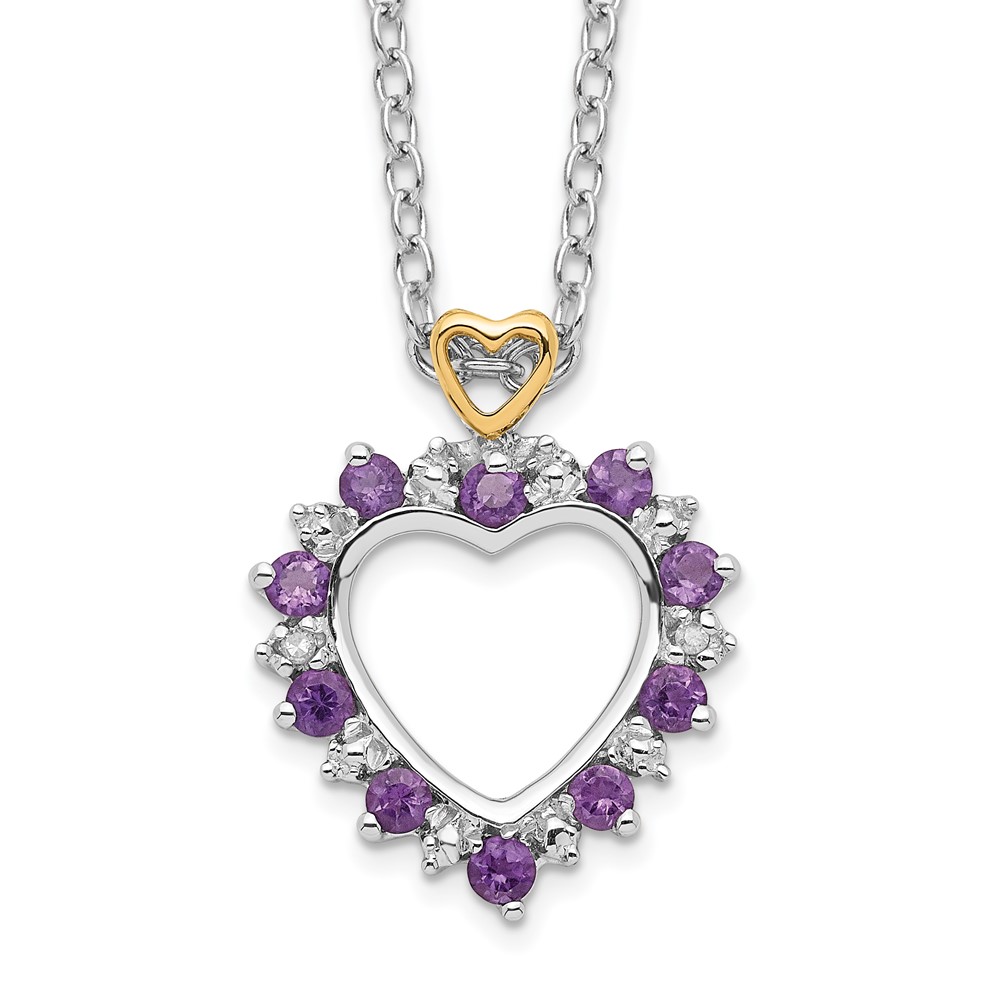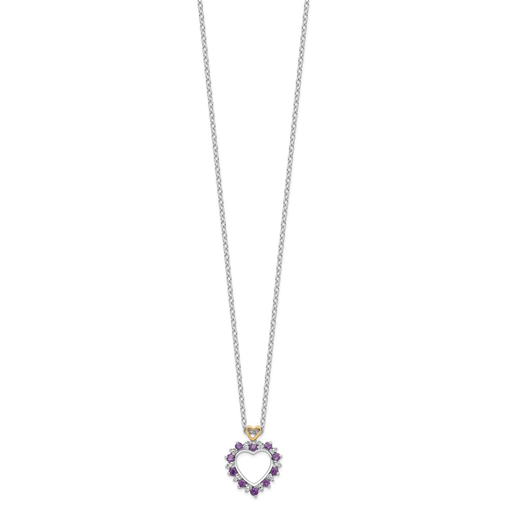Brilliant Gemstones Sterling Silver with 14K Accent Rhodium-plated Amethyst and Diamond 18 Inch Necklace with 2 Inch Extender
