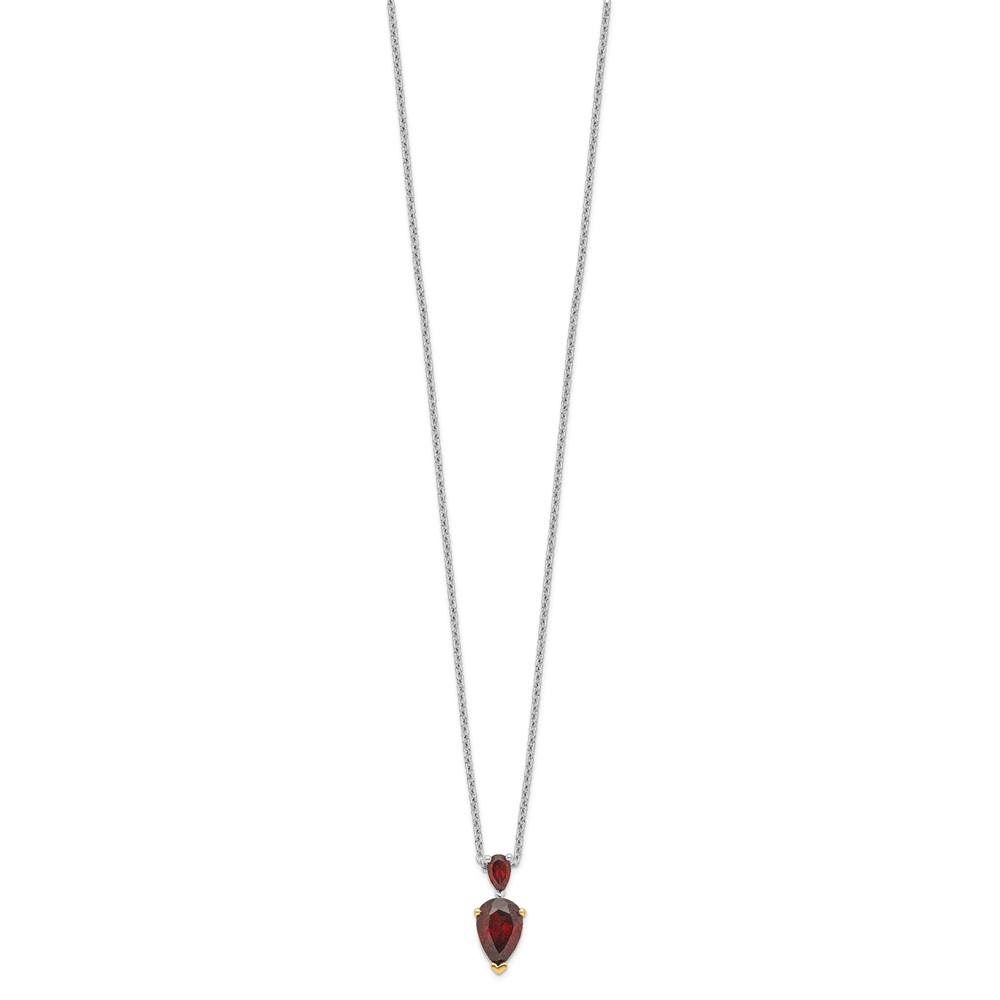 Brilliant Gemstones Sterling Silver with 14K Accent Rhodium-plated Garnet 18 Inch Necklace with 2 Inch Extender