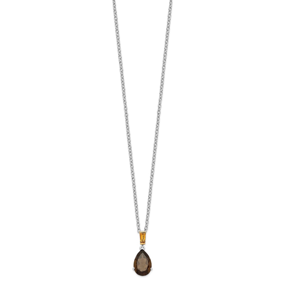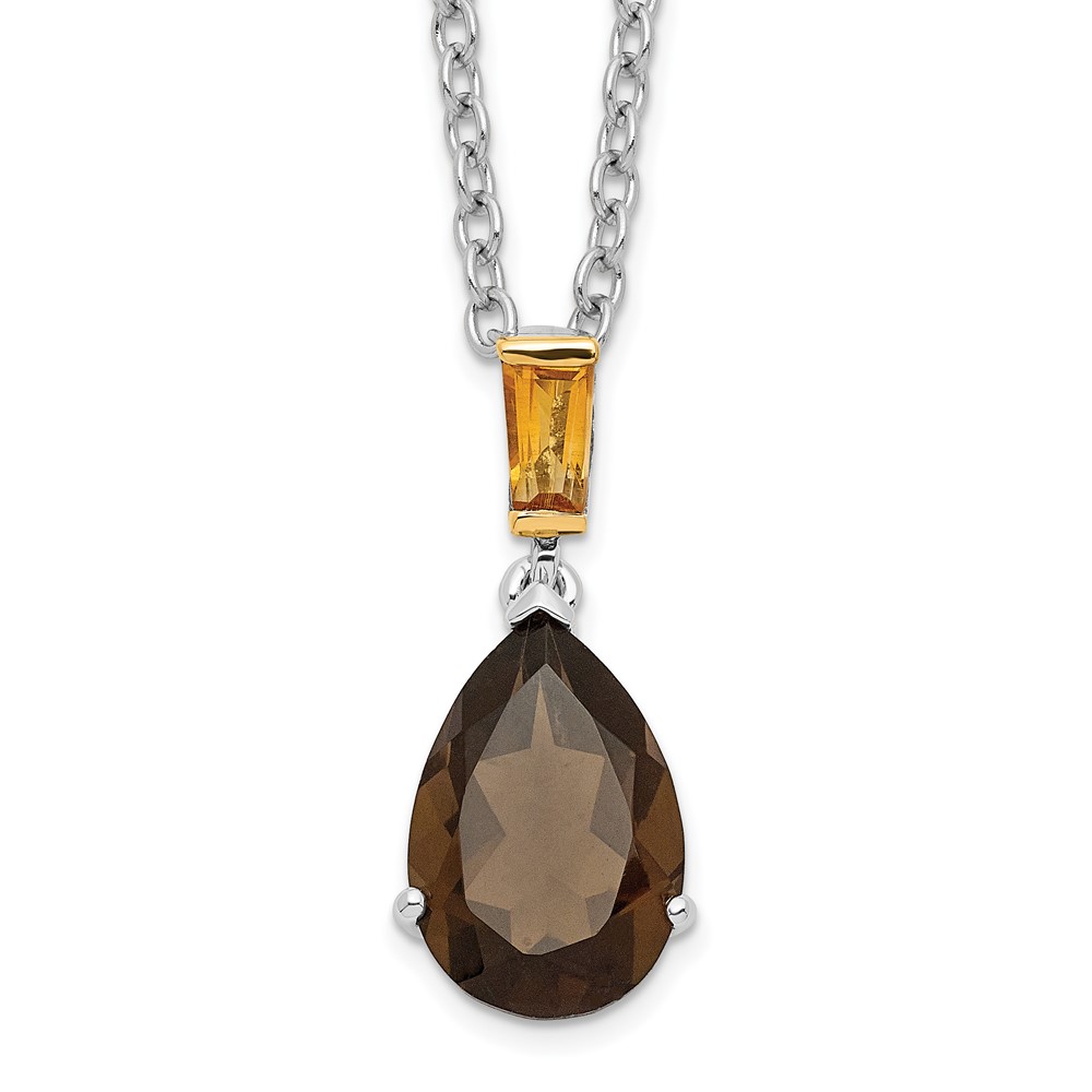 Brilliant Gemstones Sterling Silver with 14K Accent Rhodium-plated Smoky Quartz and Citrine Necklace