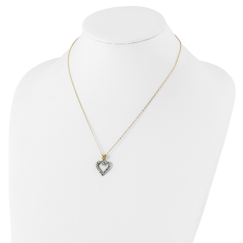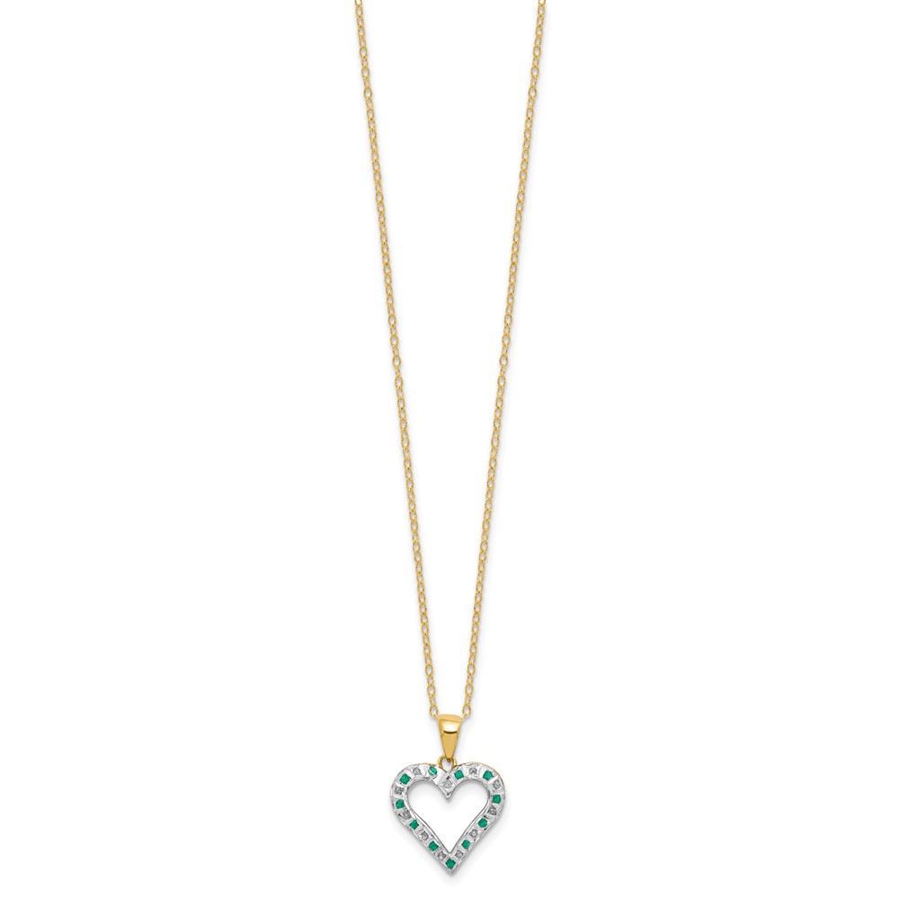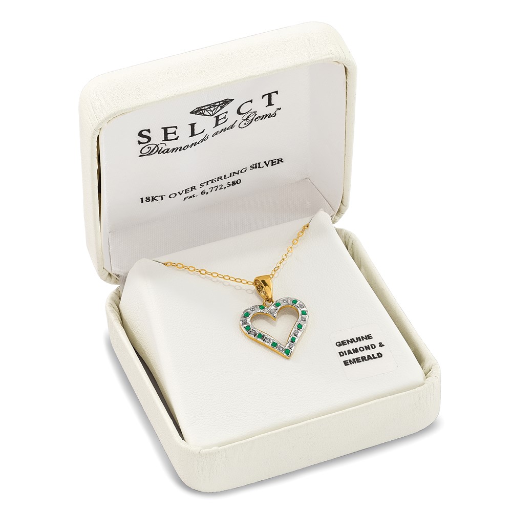 Diamond Fascination Diamond Mystique Sterling Silver 18K Gold-plated Diamond and Emerald Heart 18 Inch Necklace