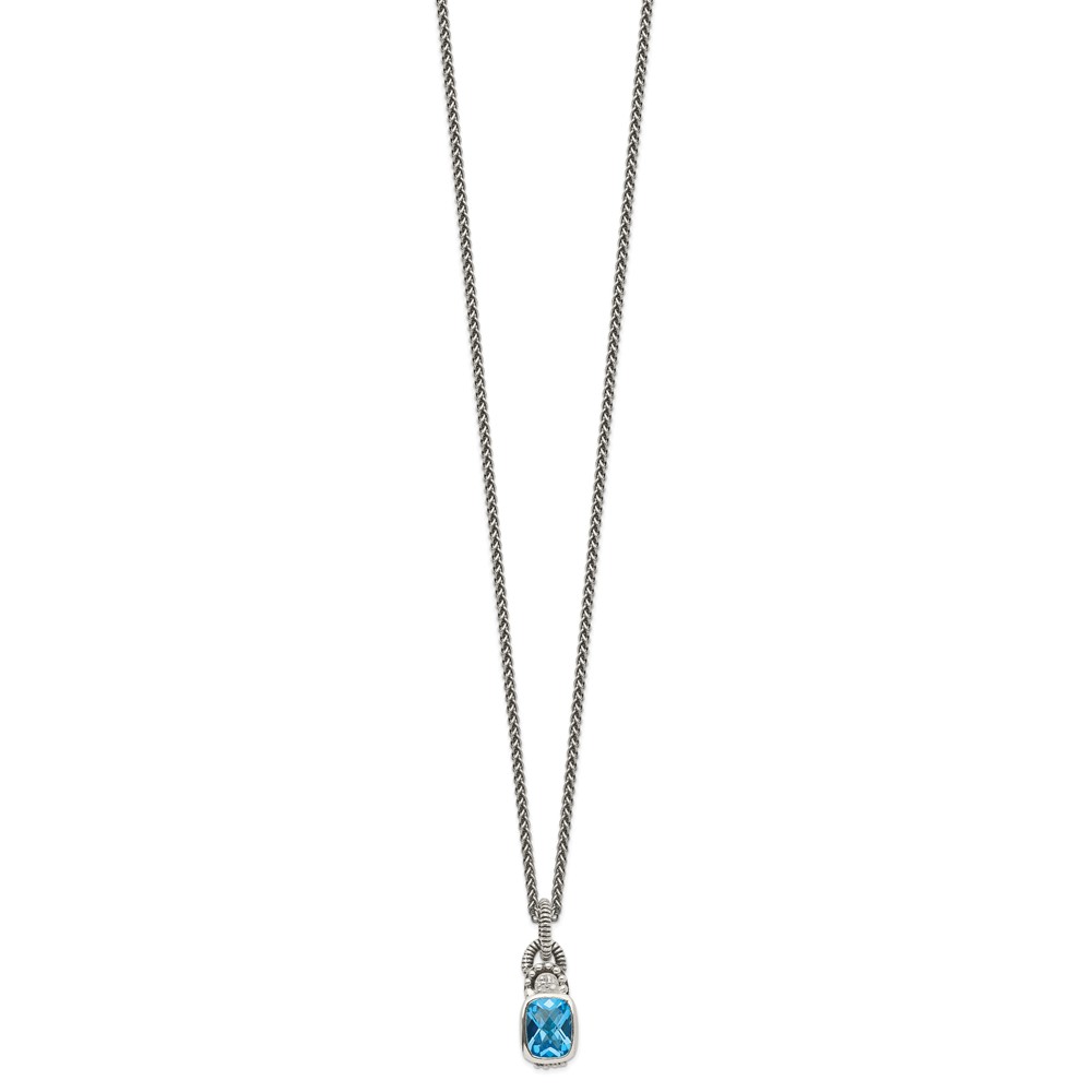 Shey Couture Sterling Silver 18 Inch Antiqued Cushion Bezel Sky Blue Topaz and Diamond Necklace