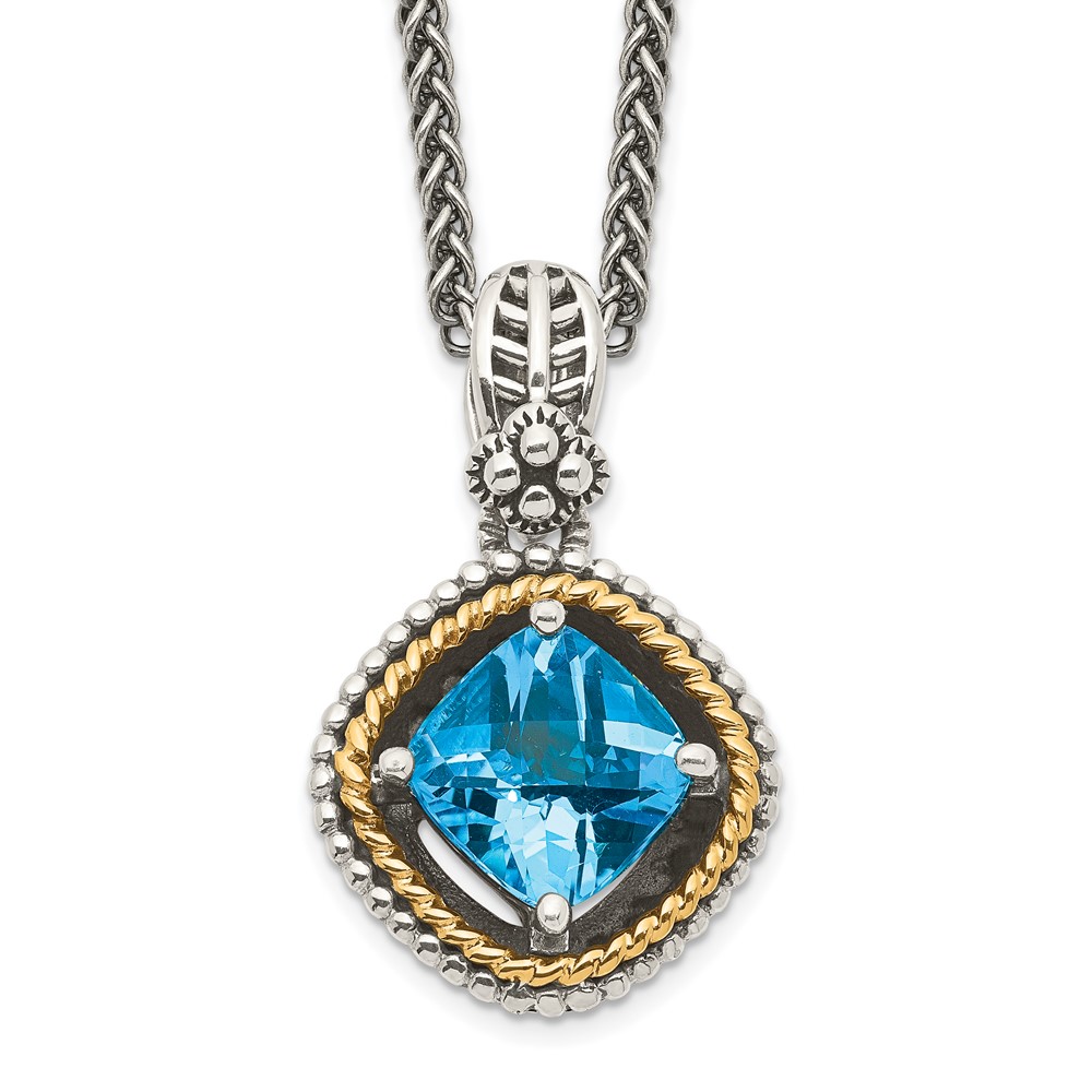 Shey Couture Sterling Silver with 14K Accent 18 Inch Antiqued Cushion Swiss Blue Topaz Necklace
