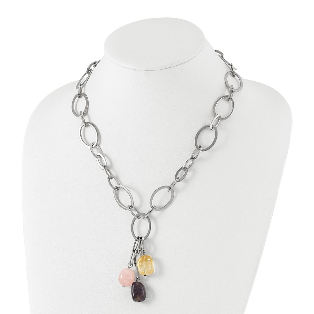 Stainless Steel Citrine Amethyst & Rose Quartz w/ 2 in ext Link Necklace